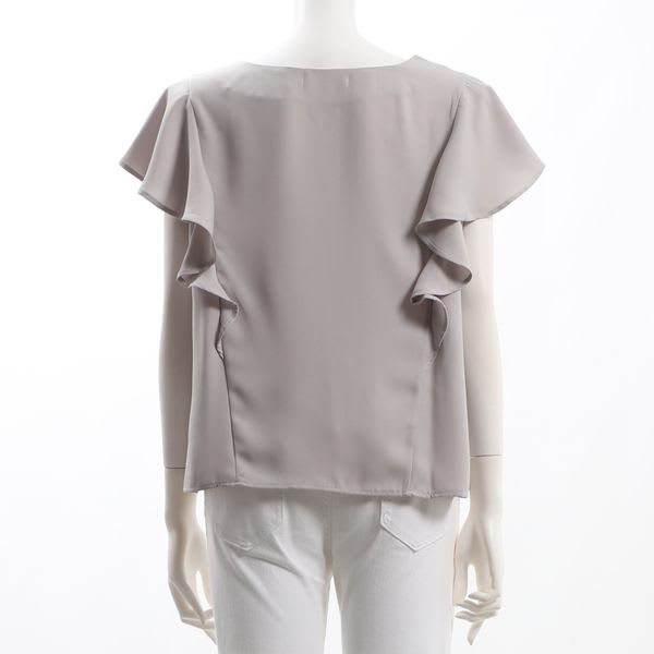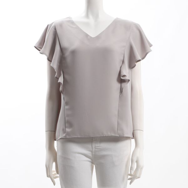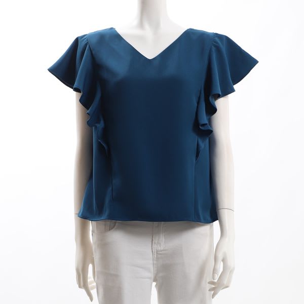 お袖のデザインが女性らしいVネックブラウス。ボトムスにはフレアスカートを合わせてフェミニンに、ストレートパンツでスッキリまとめてもいいですね。