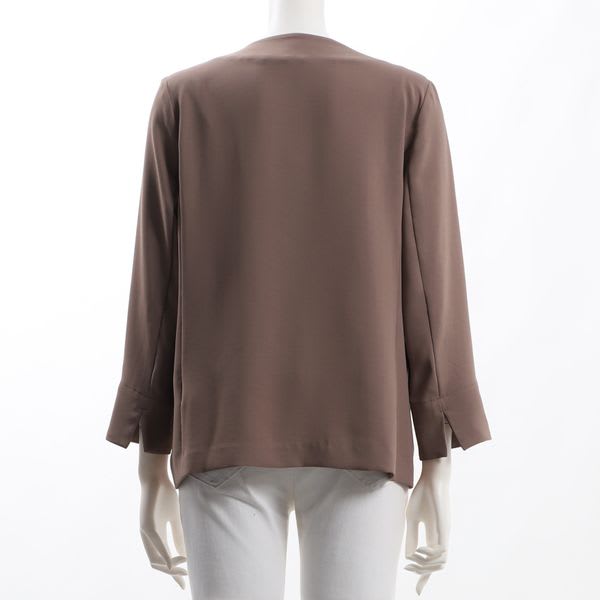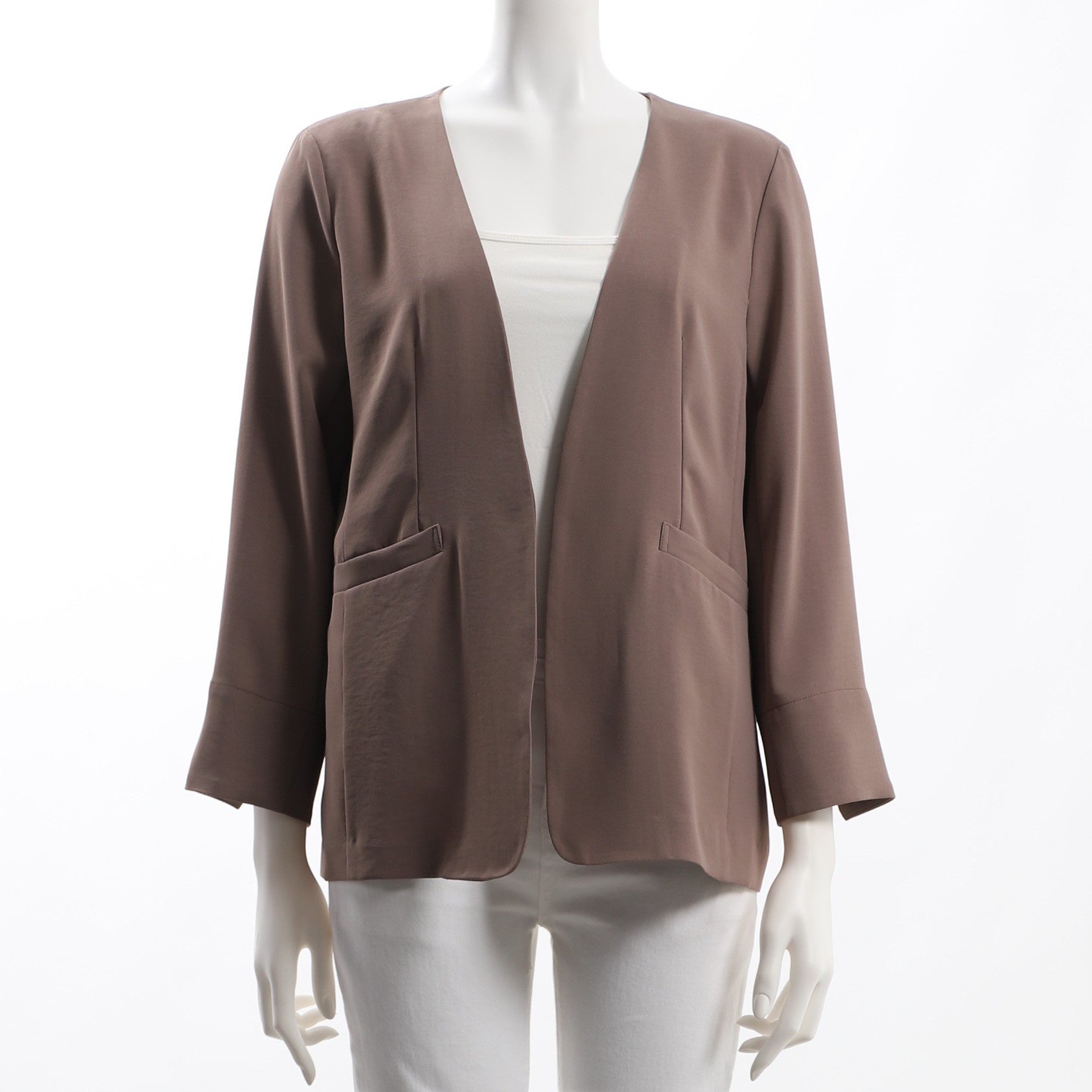 ノーカラージャケット。ボウタイブラウスに合わせてエレガントな着こなしに、Vネックカットソーを合わせてクール目に着るのもおすすめですよ。