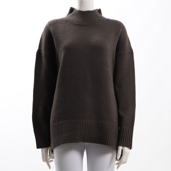 程よくゆったりとしたサイズ感が女性らしい印象のアルパカタッチのバックスリット入りハイネックニット。
