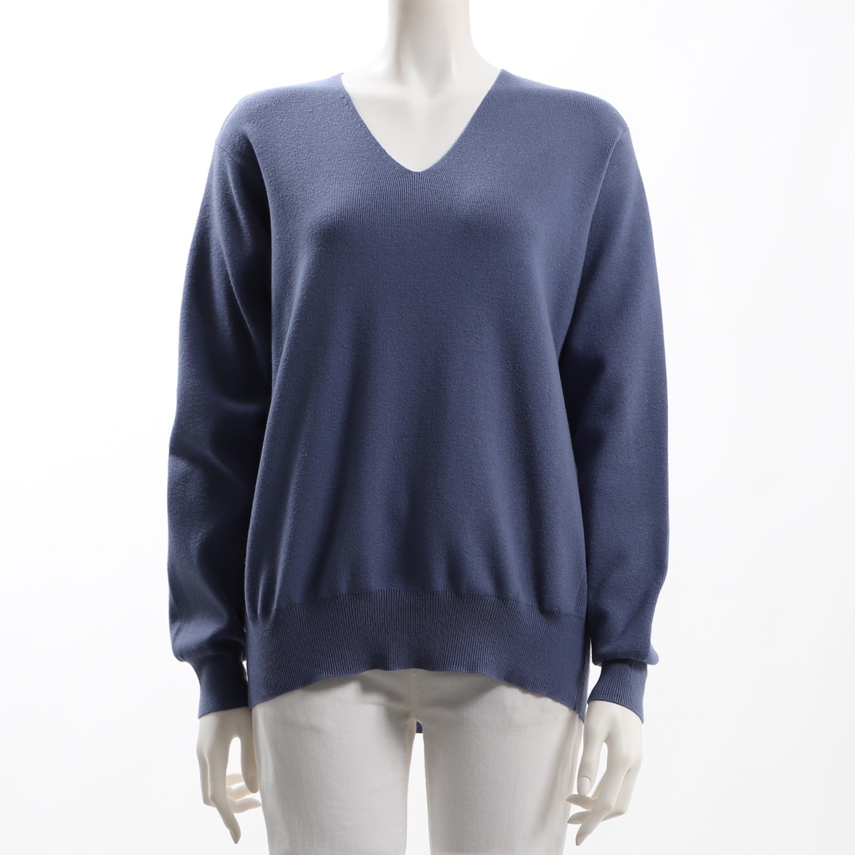 Vネックのハイゲージニットです。デニムパンツとスニーカーを合わせてカジュアルに、センタープレス入りのテーパードパンツとローファーでマニッシュにまとめても良いですね。