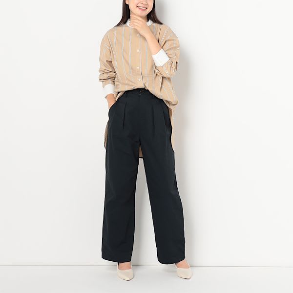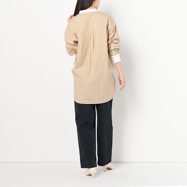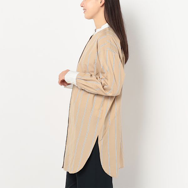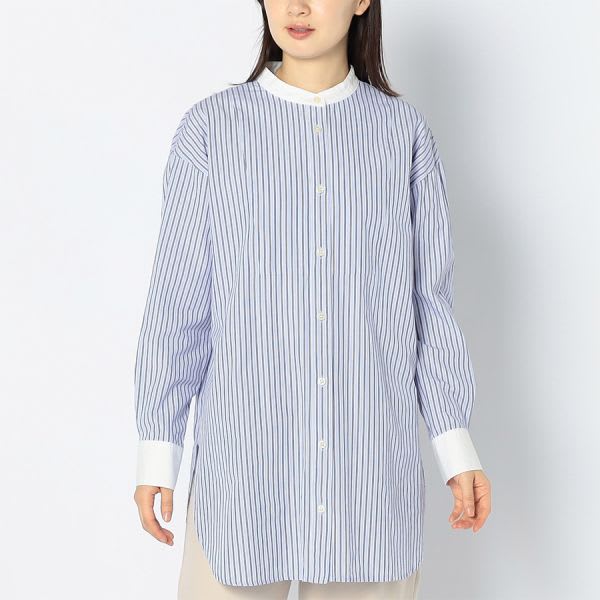 ストライプ柄バンドカラーシャツ
