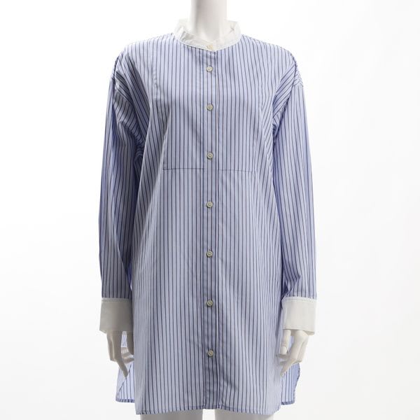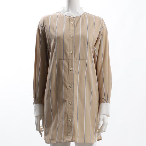 ストライプ柄のバンドカラーシャツです。