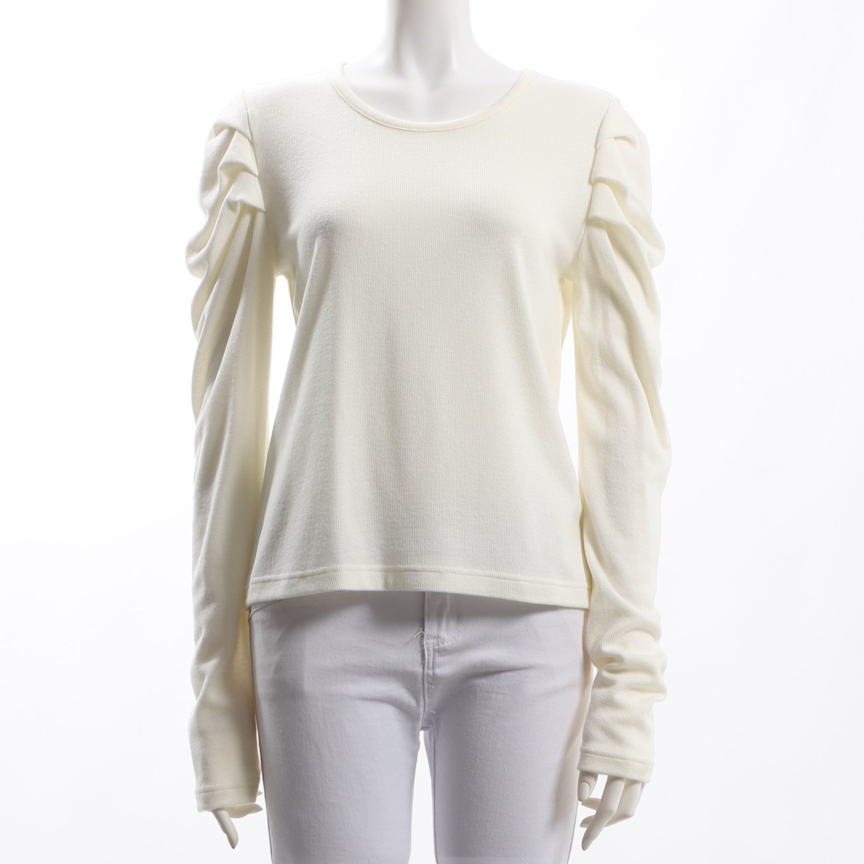 お袖のタックデザインが特徴のラウンドネックカットソーです。フレアスカートにパンプスを合わせてレディライクに、ワイドパンツにローファーを合わせてマニッシュに着こなしても良いですね。