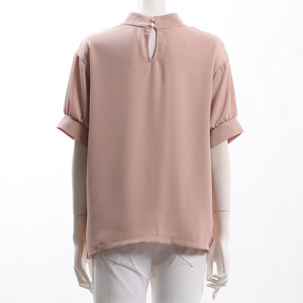 合わせていただきやすいシンプルなデザインのスタンドカラーブラウスです。レーススカートを合わせて、上品な着こなしに。テーパードパンツを合わせて、スマートな印象もいいですね。