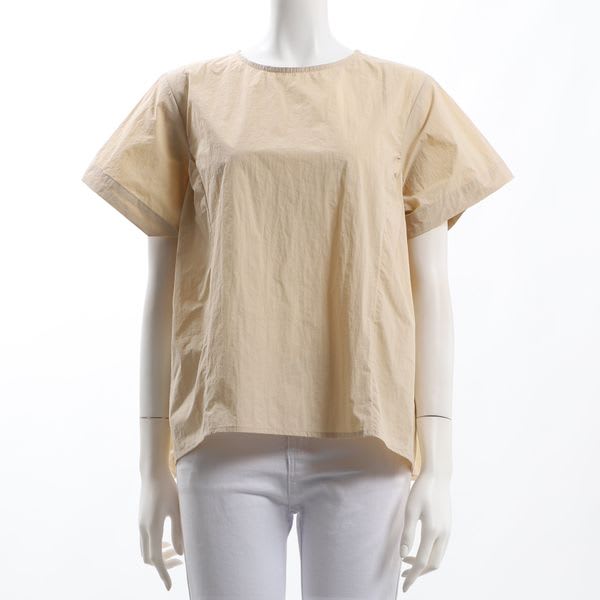 サイド切り替えデザインのクルーネックブラウスです。フレアスカートとパンプスを合わせてきれいめに、デニムパンツとスニーカーを合わせてカジュアルに仕上げても良いですね。