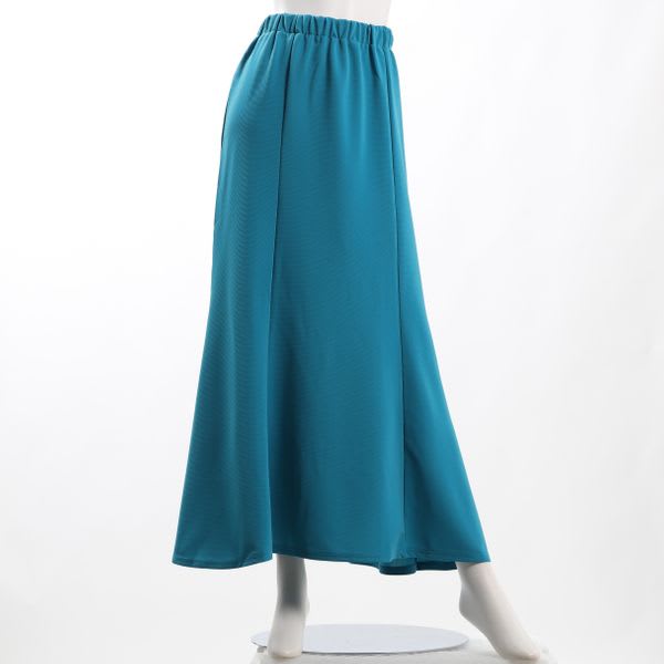 「タ-コイズブルー?綺麗な色 春らしくて嬉しかったです 素材がシワにもならず伸びて軽くて、ウエスト部分がゴムなのが最高でした笑 お食事会でいっぱい食べることができました」