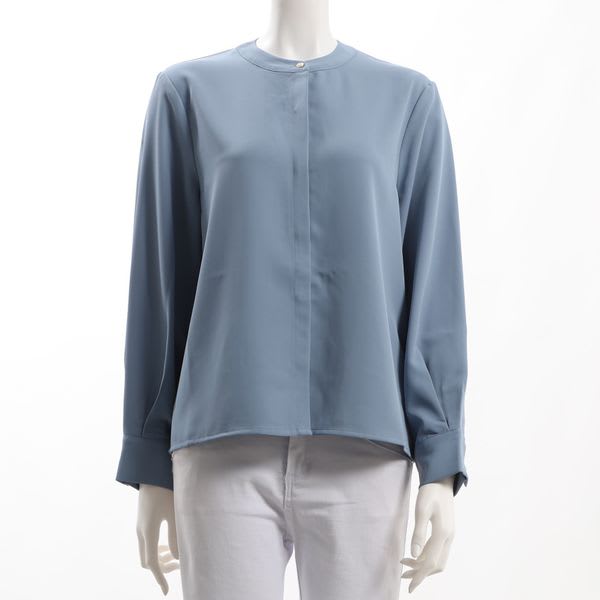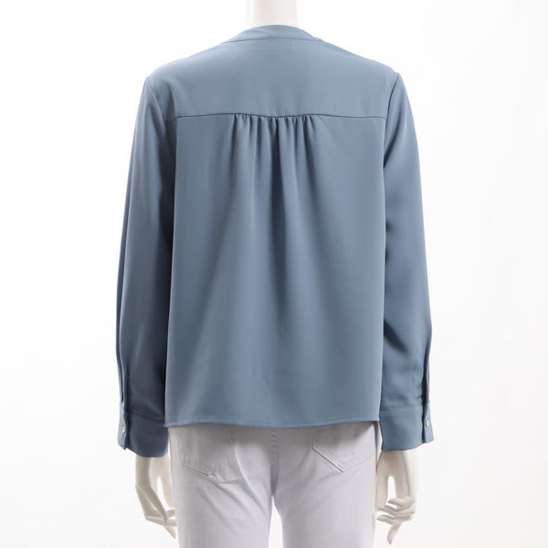 バックのギャザーデザインがポイントのバンドカラーブラウスです。タイトスカートを合わせてレディライクな着こなしに、ワイドパンツを合わせて程よくラフな着こなしも◎ですよ。