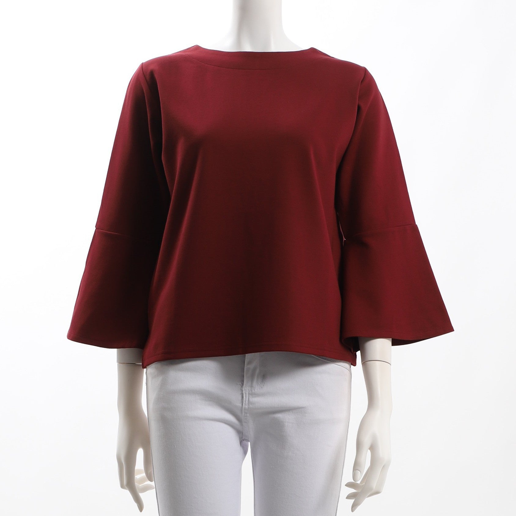 フレアスリーブデザインのカットソーです。デニムパンツとフラットシューズを合わせてカジュアルなスタイルや、タイトスカートとパンプスを合わせてキレイめスタイルもいいですね。