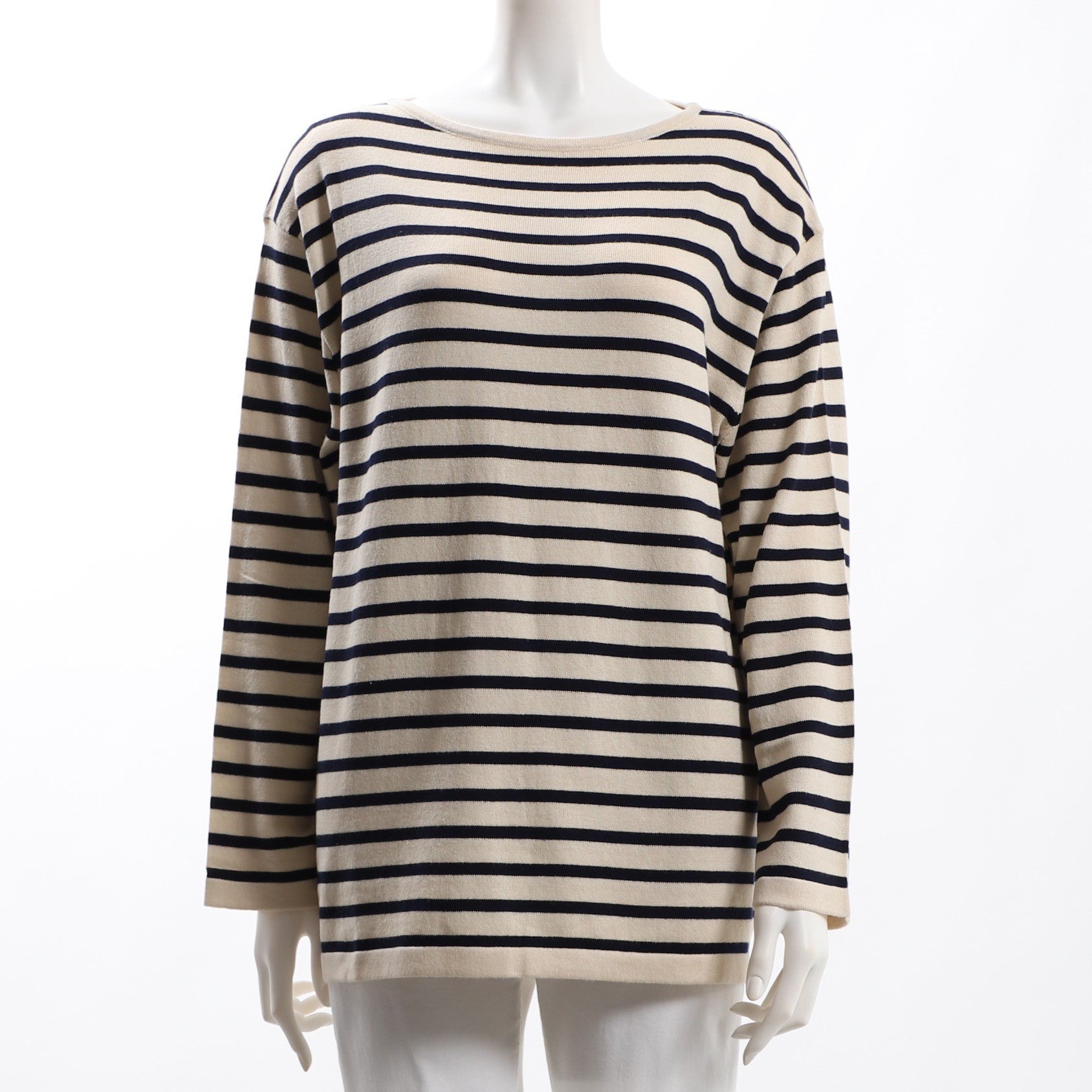 ドロップショルダーのボーダー柄ニットです。