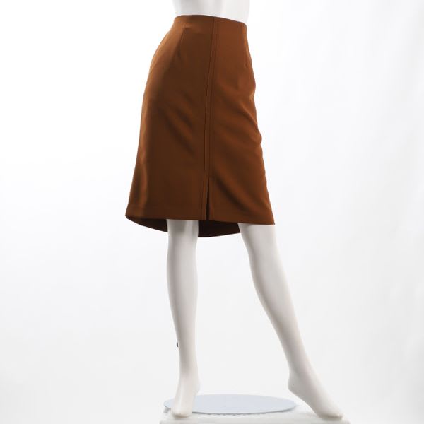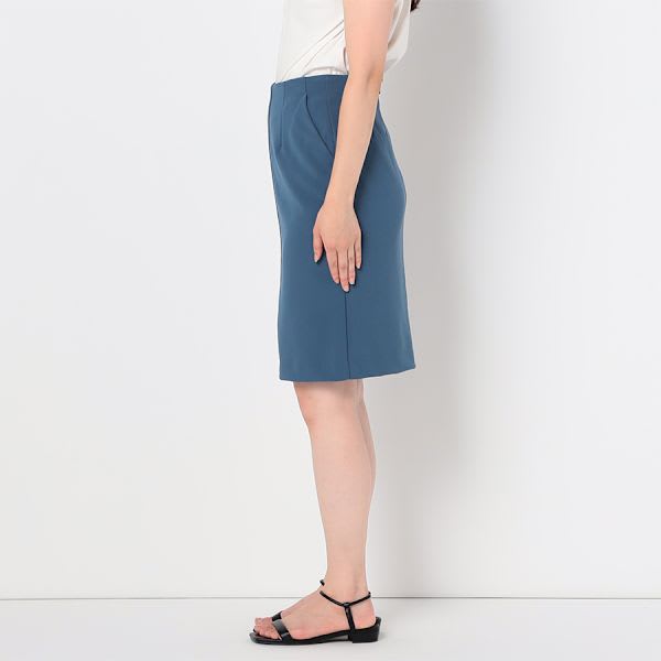 センターシームやフロントスリットがポイントのタイトスカート。トップスにはシャツを合わせてかっちりと、フリルネックブラウスで女性らしくまとめてもいいですね。