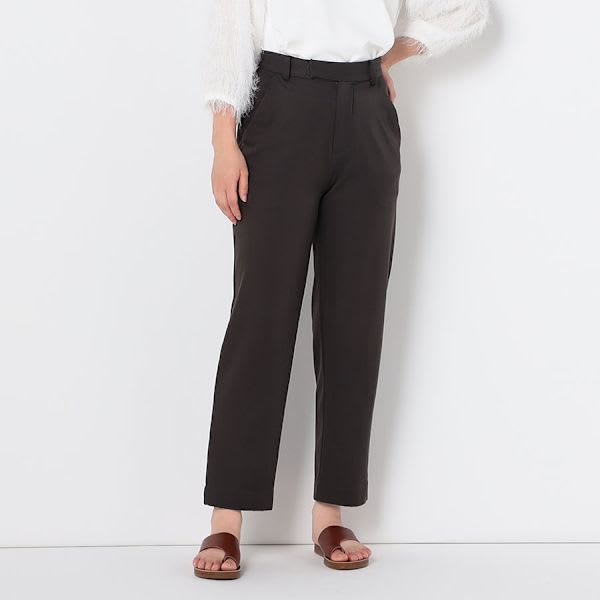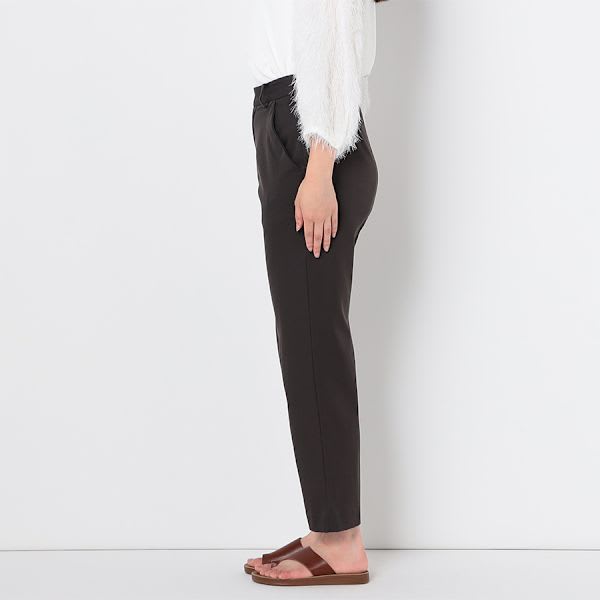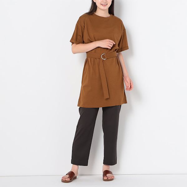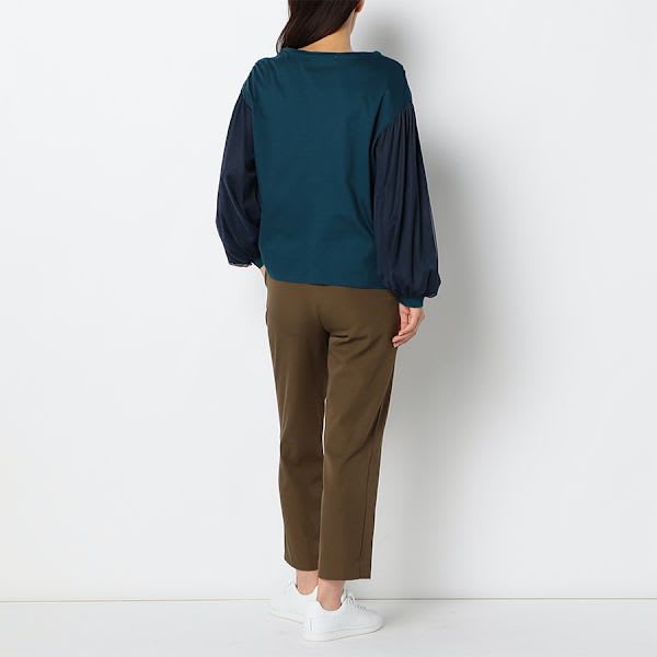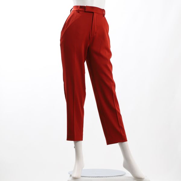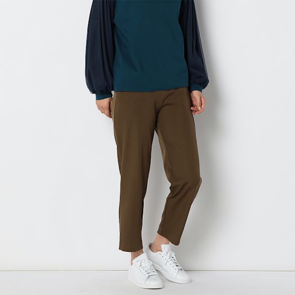 バックゴムのテーパードパンツ。トップスにはシャツを合わせてマニッシュに、フリルネックブラウスで甘辛MIXな着こなしもおすすめです。