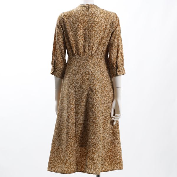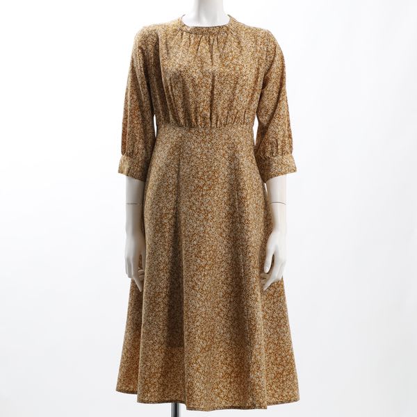 ギャザードネック小花柄ワンピース