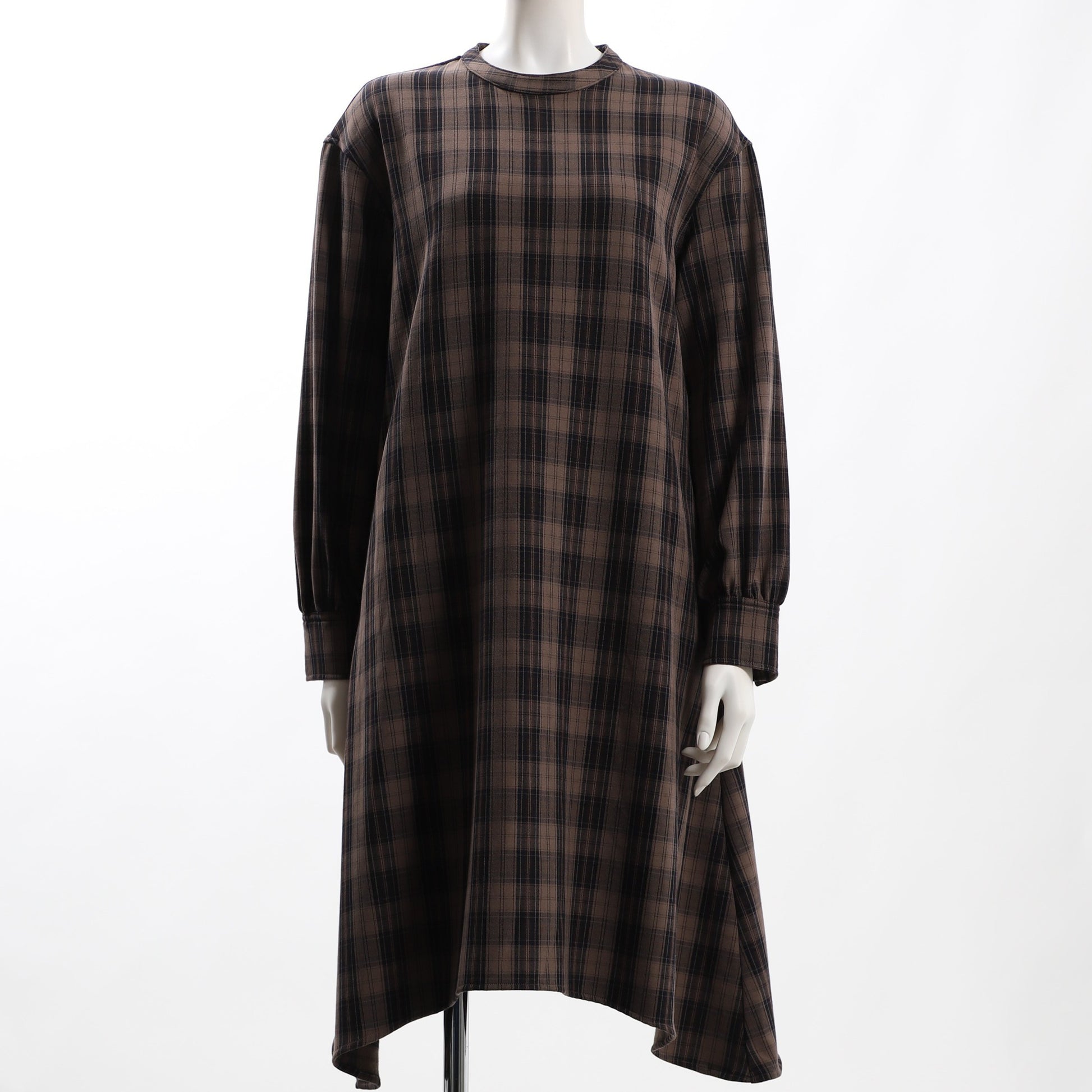 裾のイレギュラーデザインがポイントのチェック柄ワンピースです。ロングブーツを合わせてレディライクに着こなしたり、スキニーパンツをレイヤードしてカジュアルに着こなすのもおすすめです。
