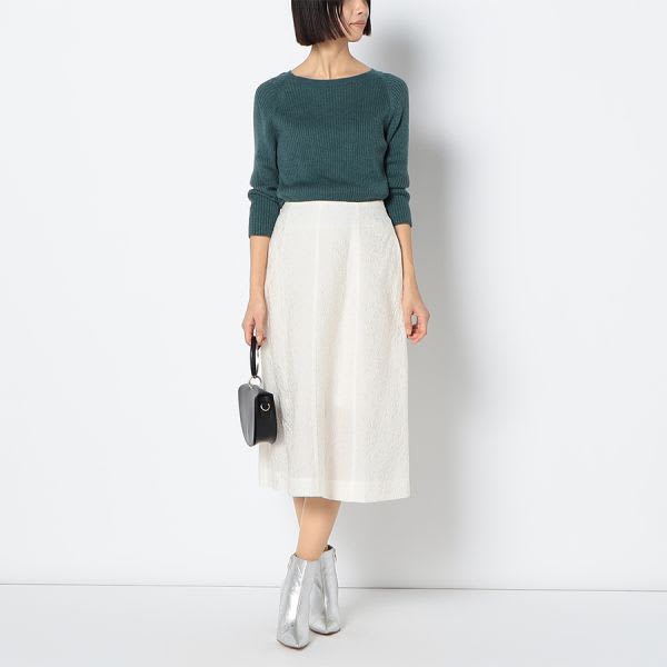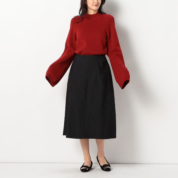 ジャガードが特徴的なフレアスカートです。スタンドカラーブラウスとバレエシューズを合わせてフェミニンスタイルに、カットソーとスニーカーを合わせてカジュアルスタイルもいいですね。