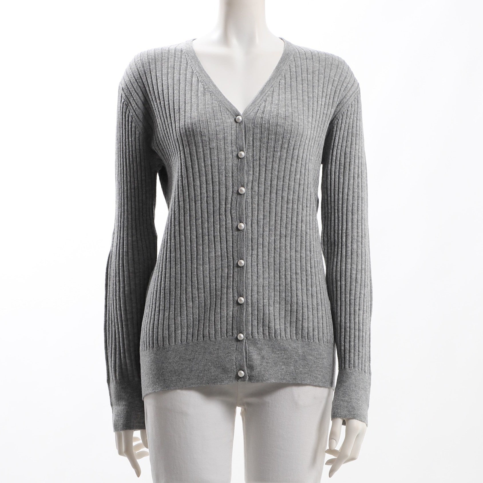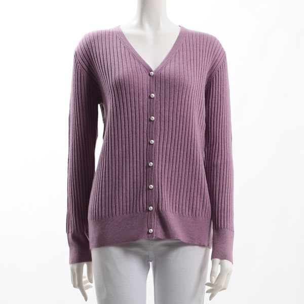 パールボタンリブニットカーディガン