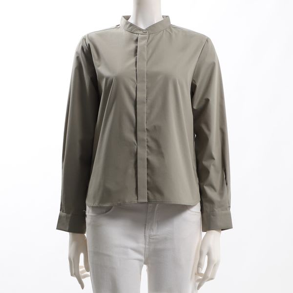 程よく詰まったネックラインと比翼デザインがポイントのブラウスです。タイトスカートを合わせてクールな着こなしに、ワイドパンツを合わせてカジュアルな着こなしもいいですね。