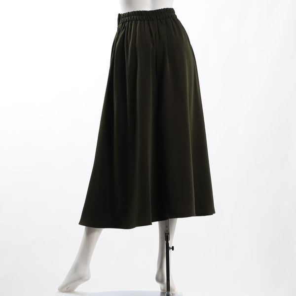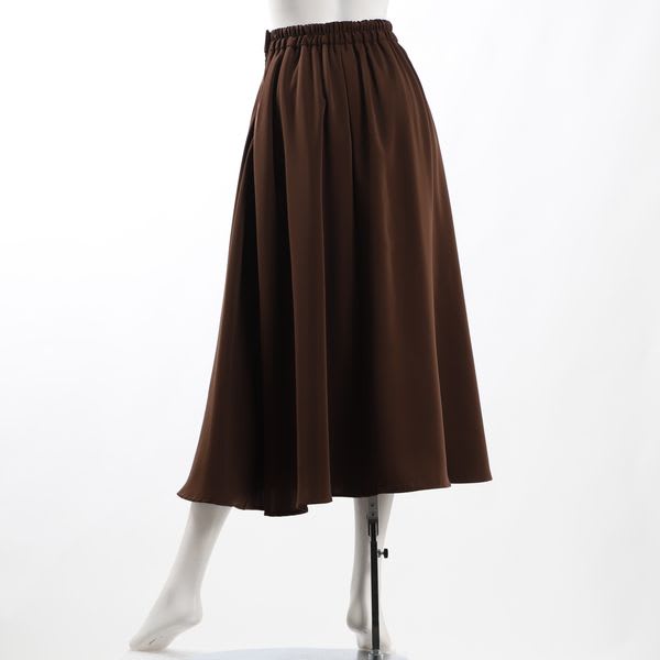 バックウエストゴムのフレアスカート。ギャザーブラウスを合わせてきれいめな着こなしに、ボーダー柄カットソーを合わせてカジュアルめな着こなしもいいですね。