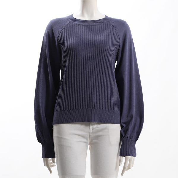 リブとハイゲージの切り替えが特徴的なラグランスリーブニット。ティアードスカートを合わせて女性らしく着てもいいですし、デニムパンツを合わせてかっこよく着てもいいですね。
