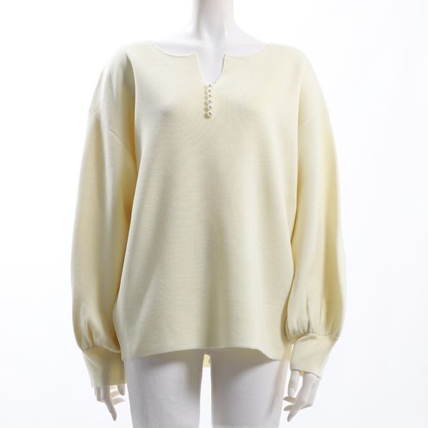 「シンプルなニットですが、ポワン袖と胸元のチャームがアクセントでとても良かったです。それも可愛すぎず大人っぽくきられました。ざっくりとした生地感も好みでした。」