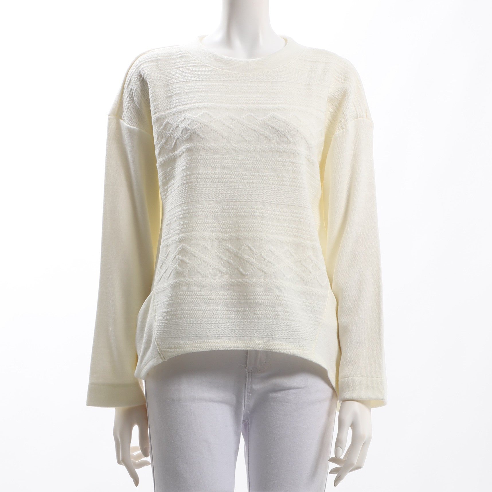 前身頃のケーブルの切り替えが特徴的なカットソー。デニムパンツを合わせてマニッシュな着こなしに、マーメイドスカートを合わせて女性らしく着こなすのもいいですね。