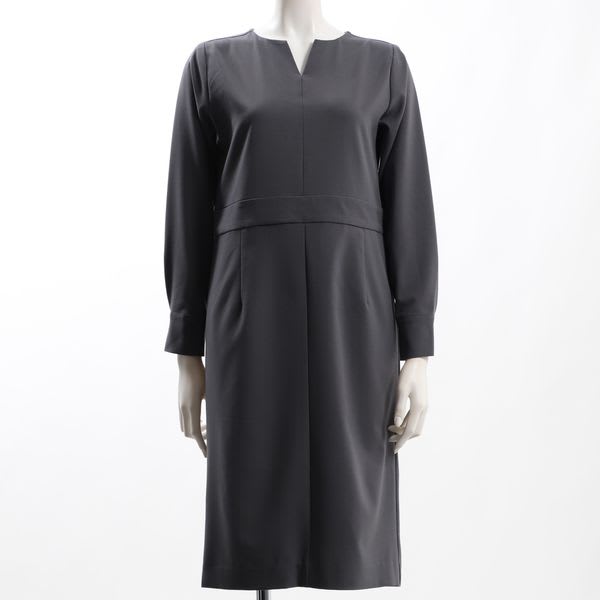 ウエスト切り替えオープンフロントネックワンピース