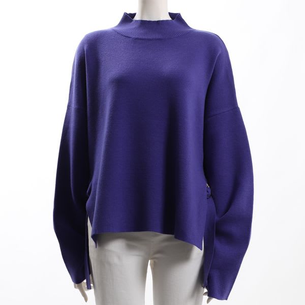 両サイドのスリットとDカンのデザインベルトがポイントのニットです。デニムパンツを合わせてカジュアルな着こなしに、タイトスカートを合わせてレディライクな着こなしもいいですね。