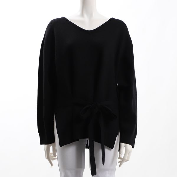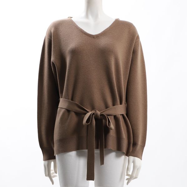ウエストリボンベルト付きのVネックニットです。