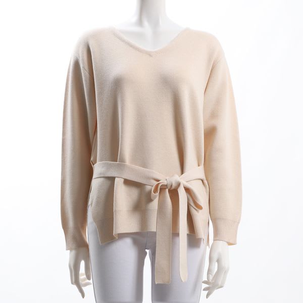 ウエストリボンベルト付きVネックニット