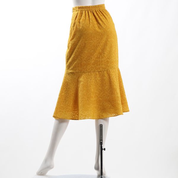 総レースのマーメイドスカートです。ボウタイブラウスを合わせてフェミニンスタイルに、ゆったりとしたニットを合わせてカジュアルスタイルもいいですね。