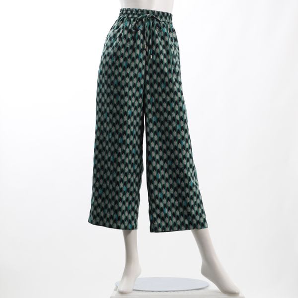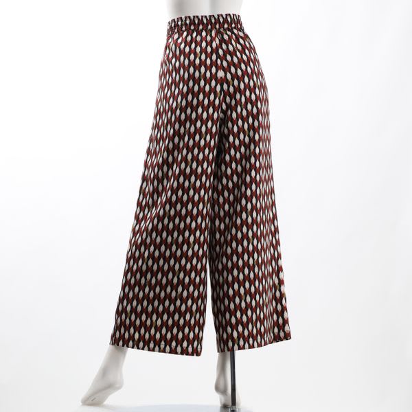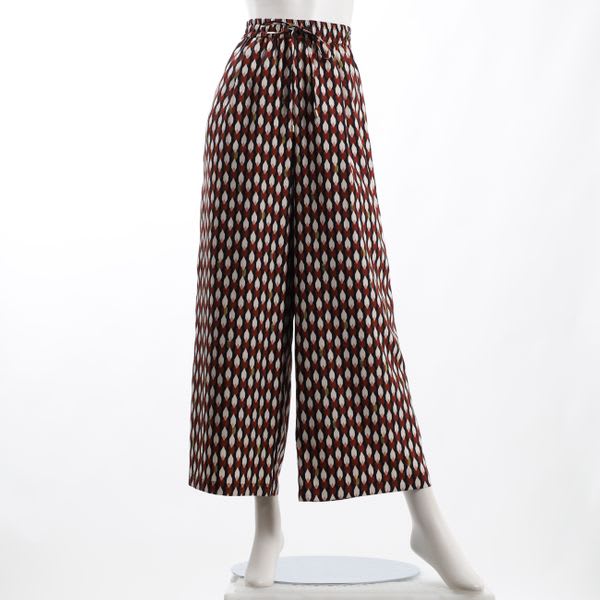 総柄のドロストワイドパンツです。カットソーとスニーカーを合わせてカジュアルスタイルに、スタンドカラーブラウスとポインテッドトゥパンプスを合わせて綺麗めスタイルもいいですね。
