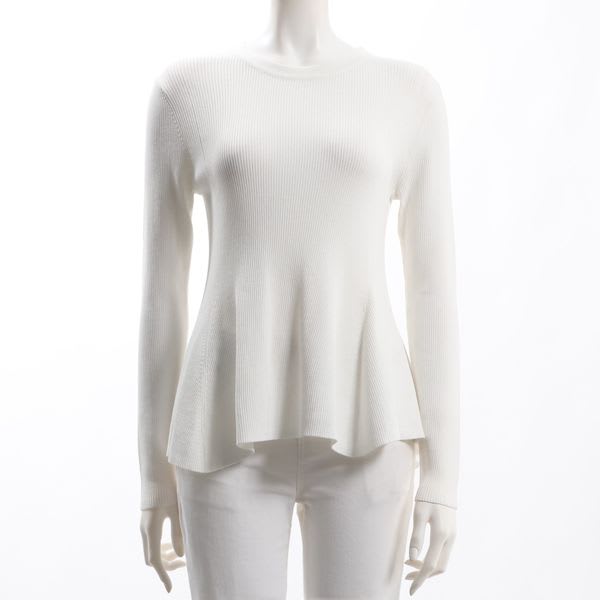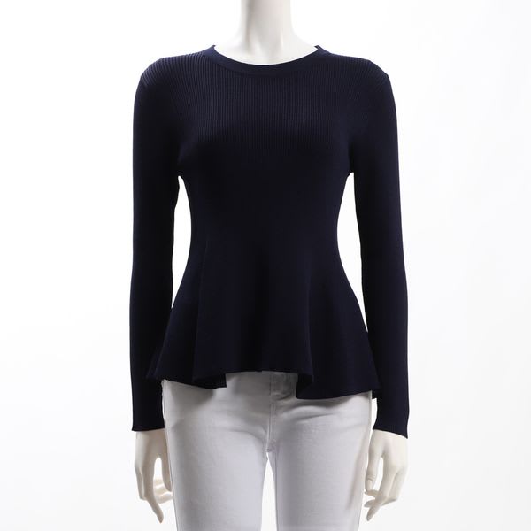 ぺプラムデザインのリブニットです。デニムパンツとスニーカーを合わせたカジュアルスタイルや、タイトスカートとラウンドトゥパンプスを合わせた女性らしいスタイルもおすすめです。