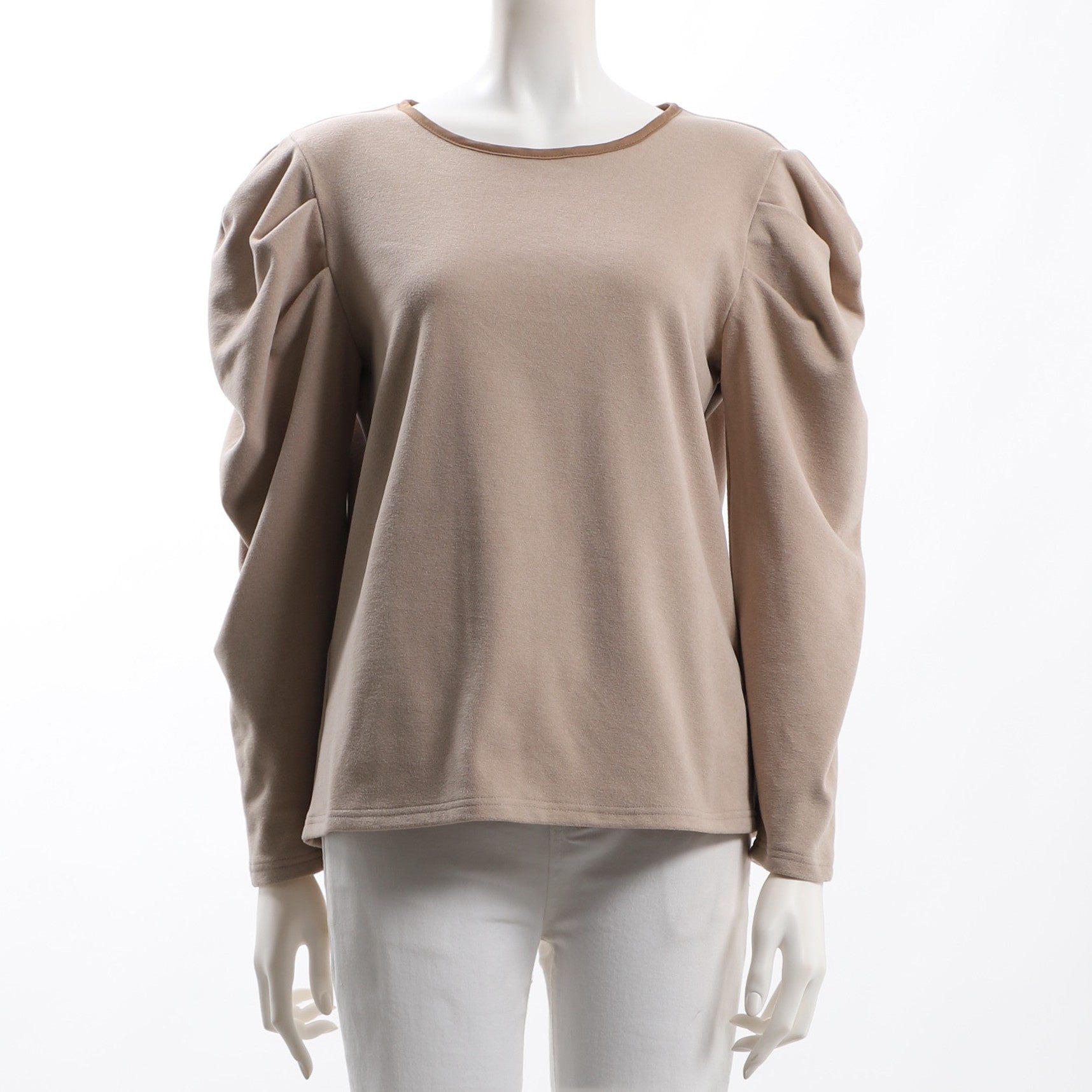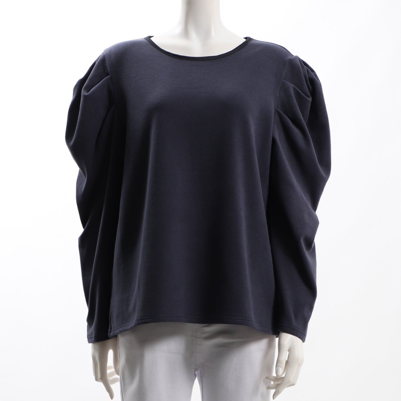ネックラインのパイピングやパワショルデザインがポイントのカットソー。タイトスカートを合わせてレディライクな着こなしに、スキニーパンツを合わせてクールめに着こなすのも素敵です。