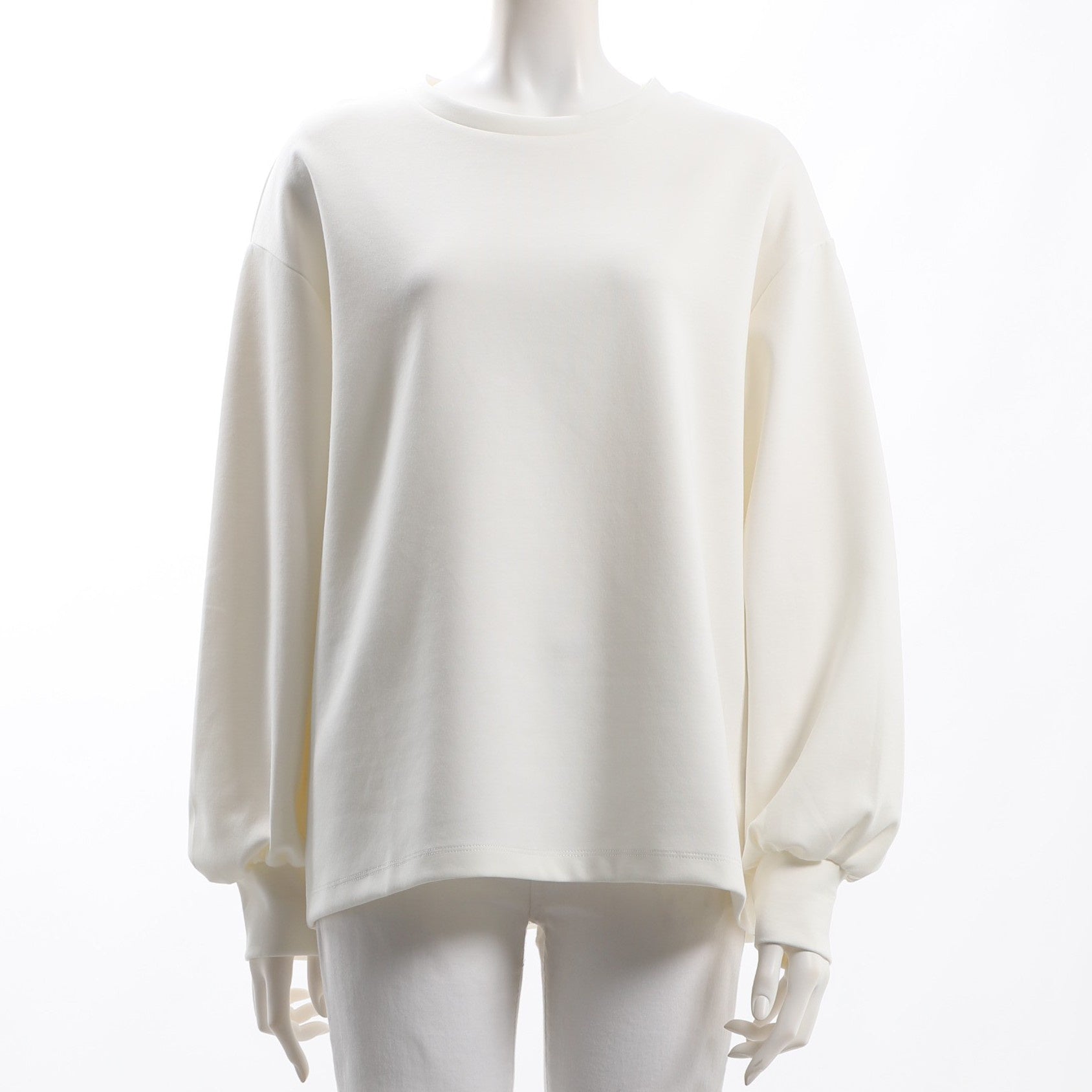 クルーネックカットソーです。ワイドパンツとスニーカーを合わせてカジュアルスタイルに、プリーツスカートとショートブーツを合わせてレディライクなスタイルも素敵ですよ。