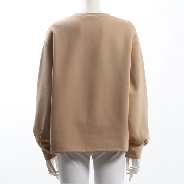 クルーネックカットソーです。ワイドパンツとスニーカーを合わせてカジュアルスタイルに、プリーツスカートとショートブーツを合わせてレディライクなスタイルも素敵ですよ。