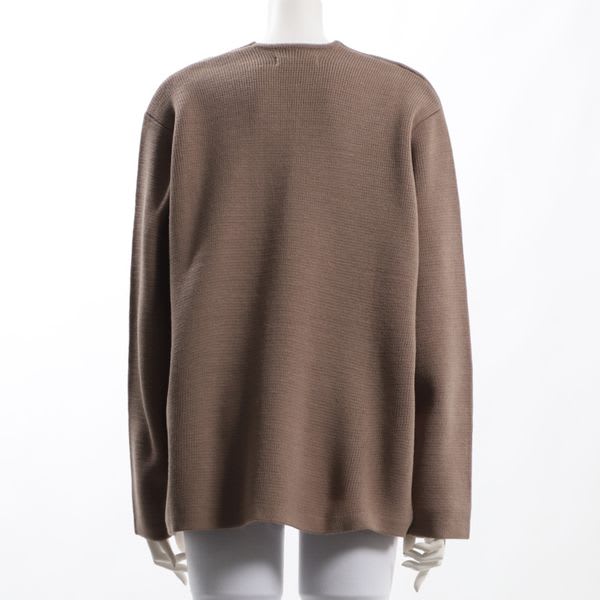 アウトポケットが特徴的なニットカーディガンです。スタンドカラーブラウスとテーパードパンツを合わせたコーディネートに羽織って綺麗めに、ボーダーカットソーとデニムパンツを合わせたコーディネートに合わせてカジュアルに仕上げてもいいですね。