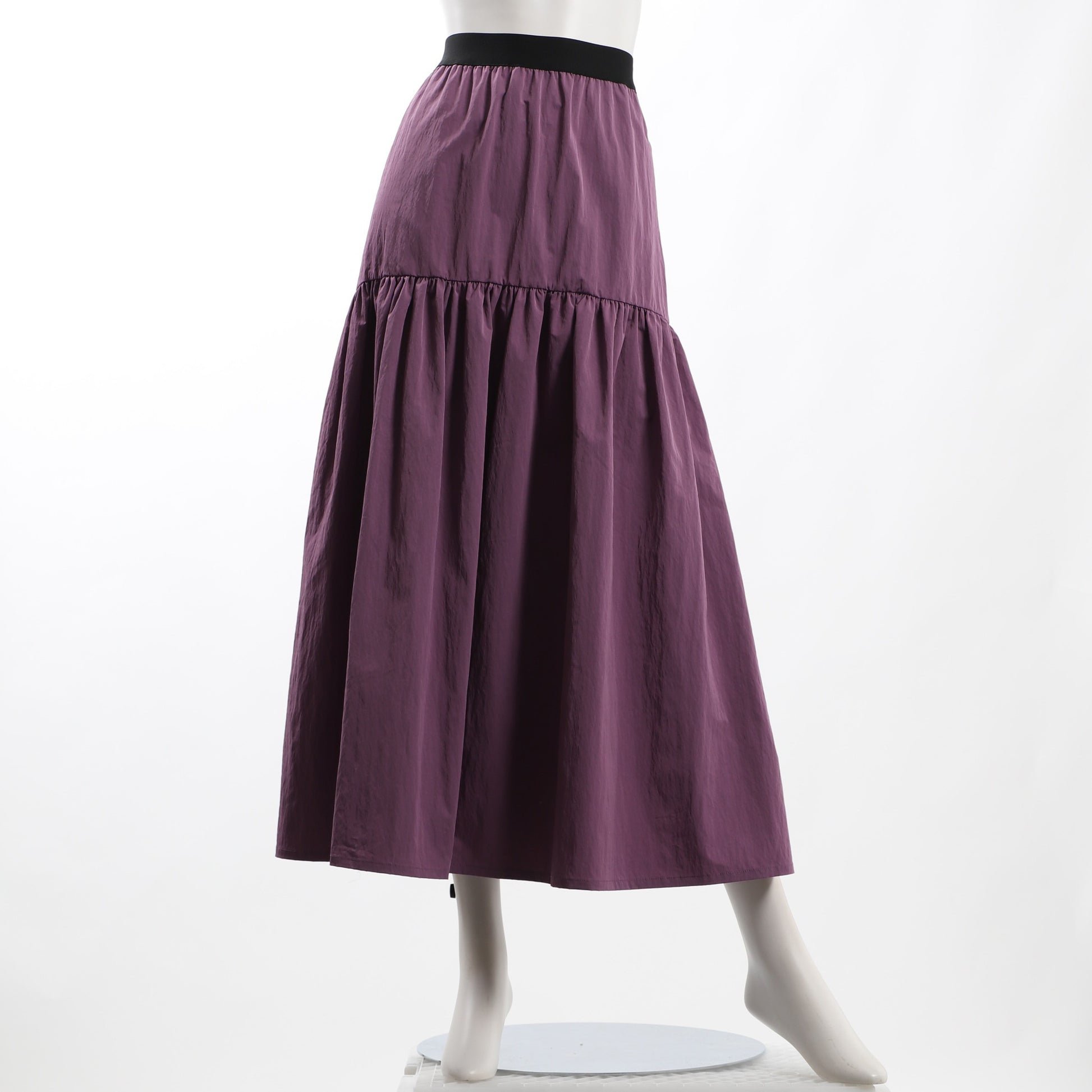 切り替えデザインがポイントのスカート。トップスにはリブトップスを合わせてカジュアルスタイルに、スタンドカラーブラウスでキレイめにまとめてもいいですね。