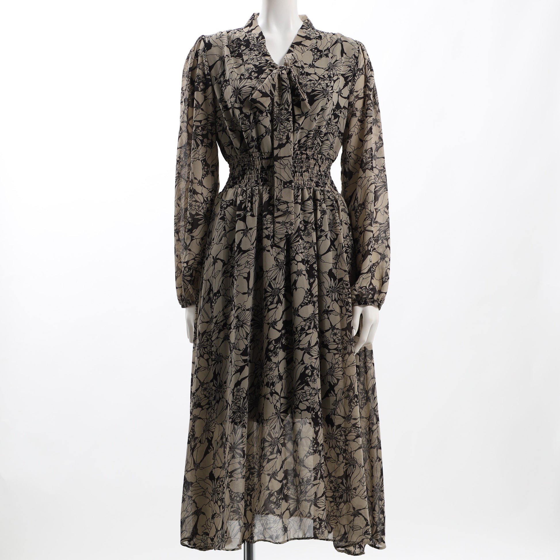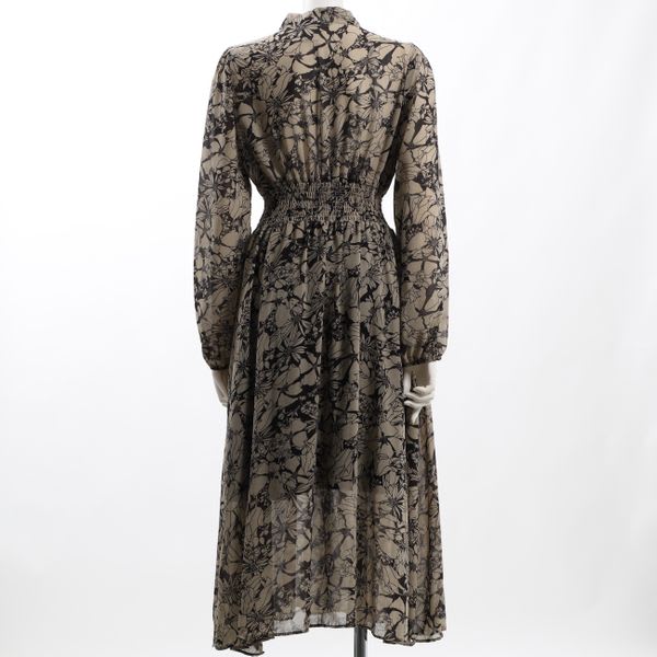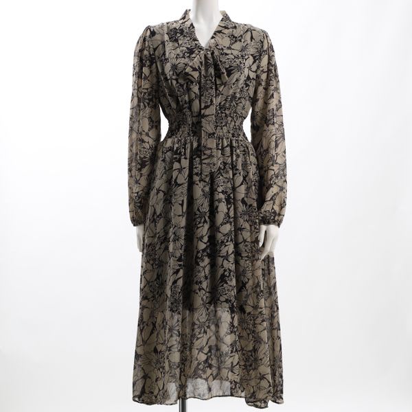 ウエストのゴムシャーリングがポイントの花柄ワンピースです。ラウンドパンプスを合わせてレディライクなスタイルに、スニーカーを合わせてカジュアルなスタイルもいいですね。