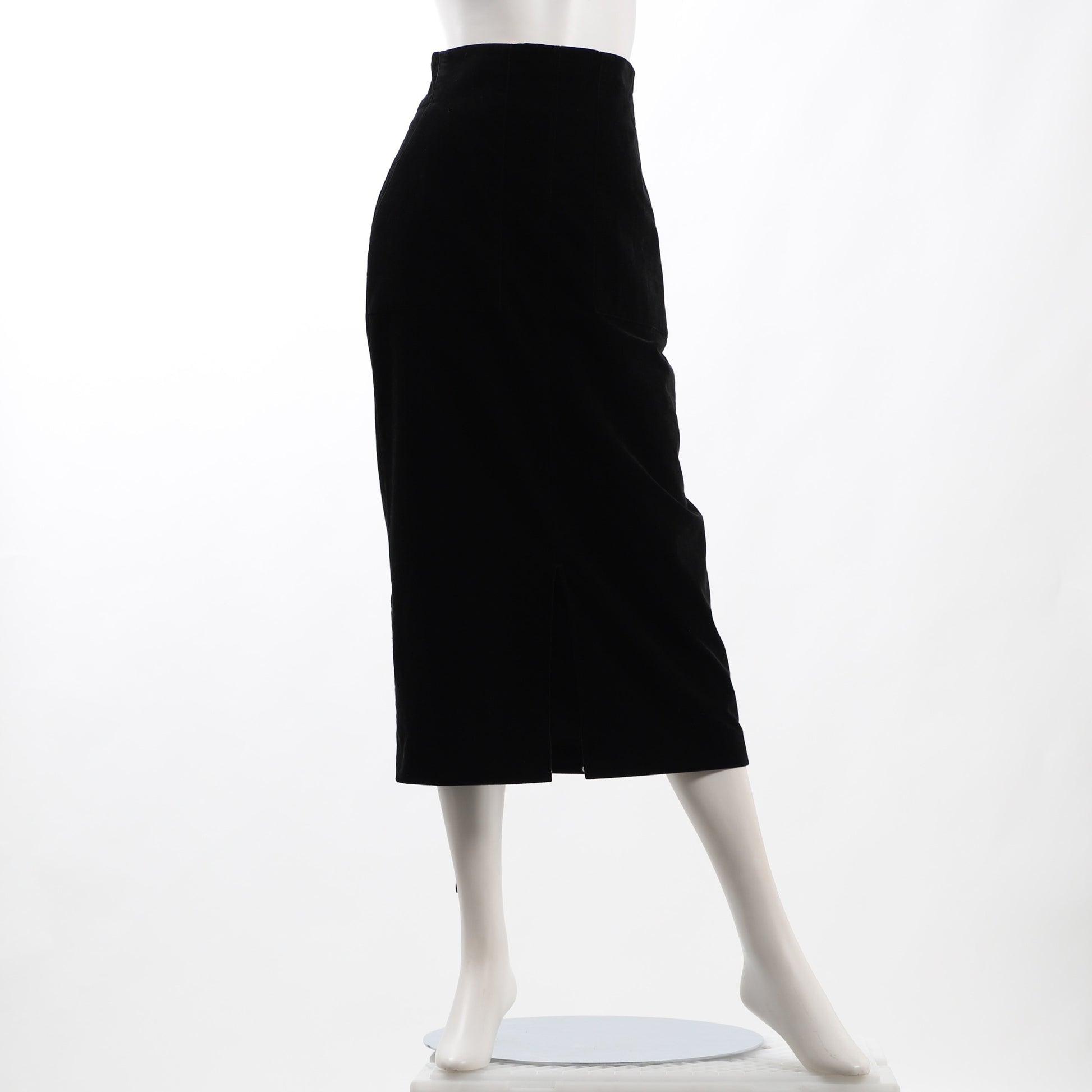 ポケット付きコーディロイタイトスカート。高伸縮でストレッチが効いているので、足さばきがよくタイトなデザインでも動きやすく、座った際に窮屈さを感じません。カシミヤニットやタスマニアニットなどでカジュアルに合わせてもいいですし、ブラウスなどと合わせてONスタイルで着用するのもお勧めです。足元はブーツで合わせ、敢えてスポーティーなマウンテンパーカーと合わせてもモダンカジュアルに決まるデザインです。