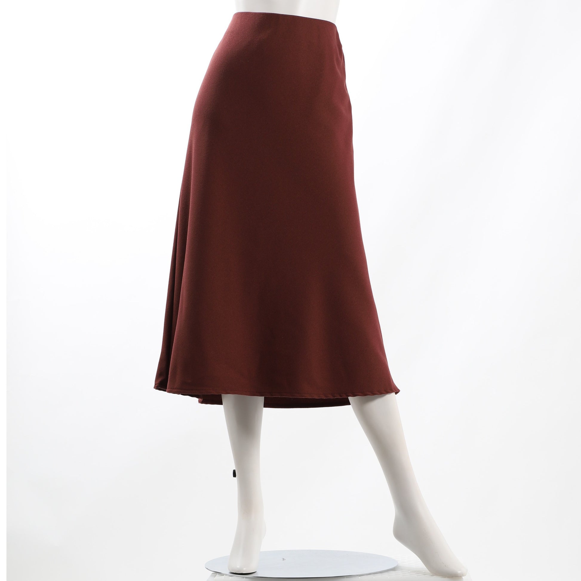 裾に向かって緩やかに広がるナロースカート。トップスにはラウンドネックのとろみブラウスを合わせてキレイめに、フード付きプルオーバーでカジュアルダウンしてもいいですね。