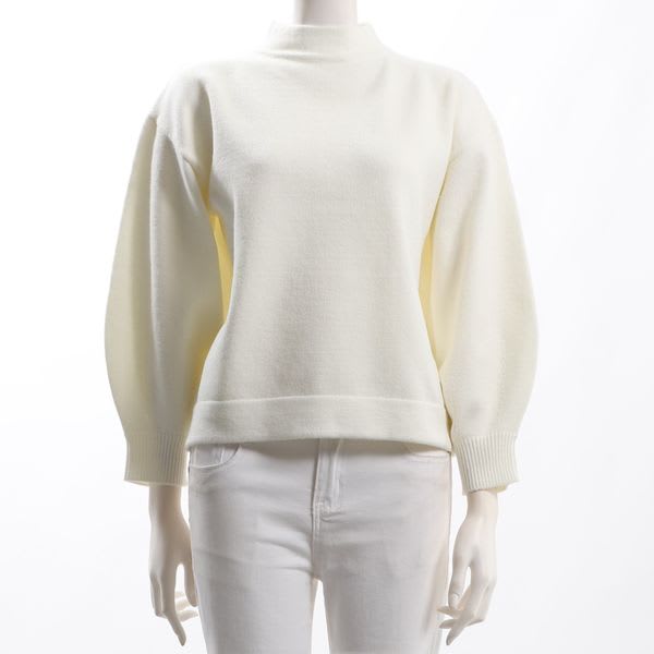 「ふんわりした袖、丁度良い丈の白いニットを探していました!生地も分厚く目が詰まっていて、暖かいし、どんなボトムスにも合うのが良いです。とても気に入りました。」