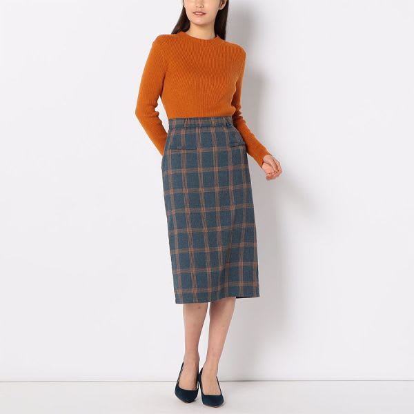 フロントスリットチェック柄タイトスカート