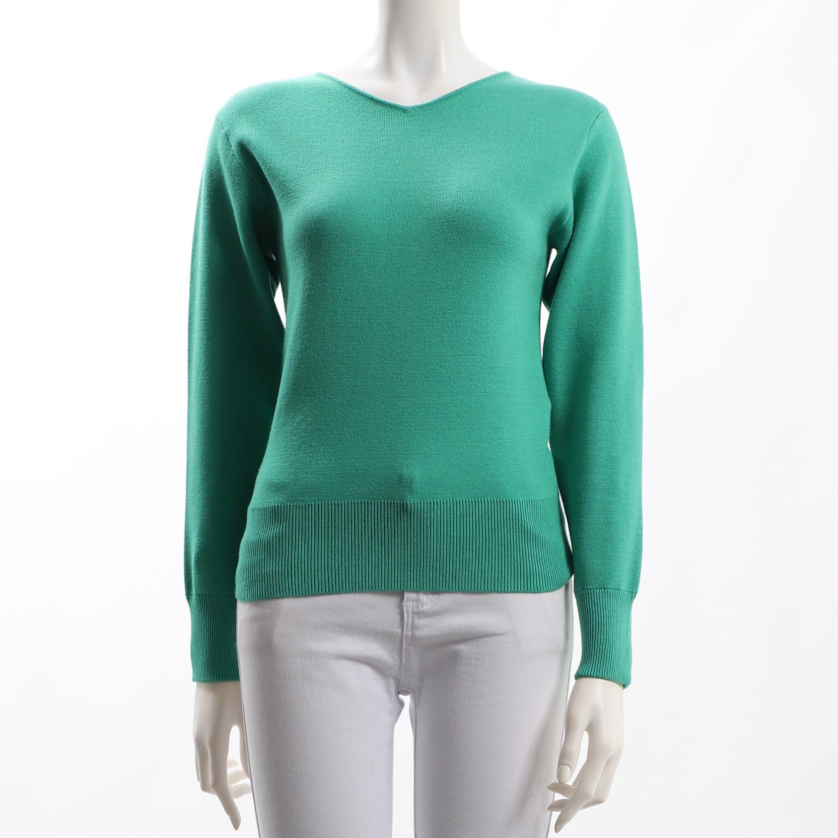 ハイゲージのVネックニット。ボトムスにはフレアスカートを合わせてフェミニンに、ワイドパンツでカジュアルにまとめてもステキです。