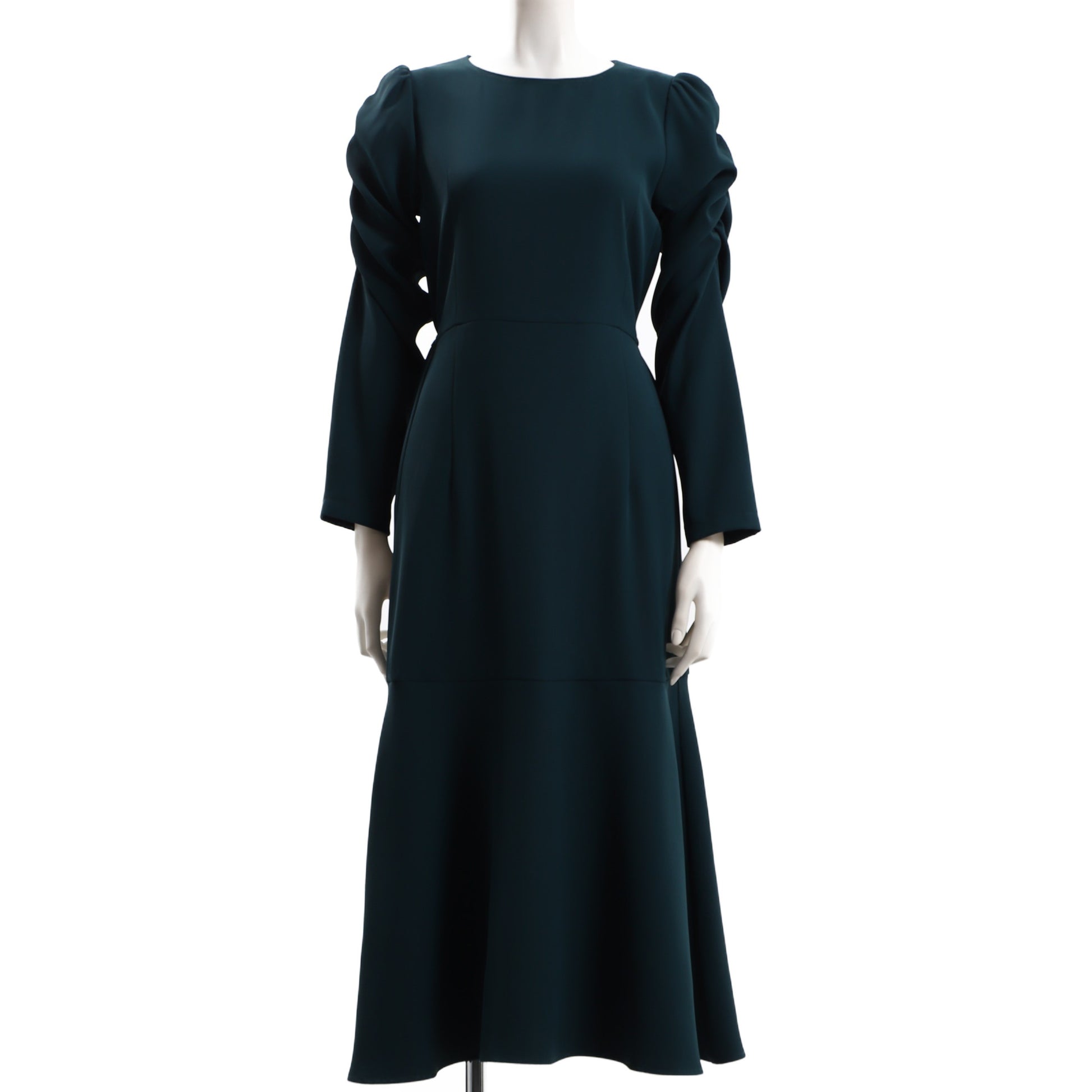 パワショルデザインのマーメイド切り替えワンピース。ゴールド系のロングネックレスを合わせてエレガントに、パールのネックレスを合わせて華やかに仕上げるのも素敵です。