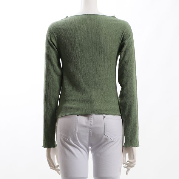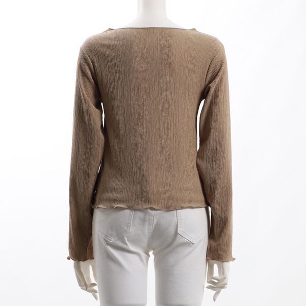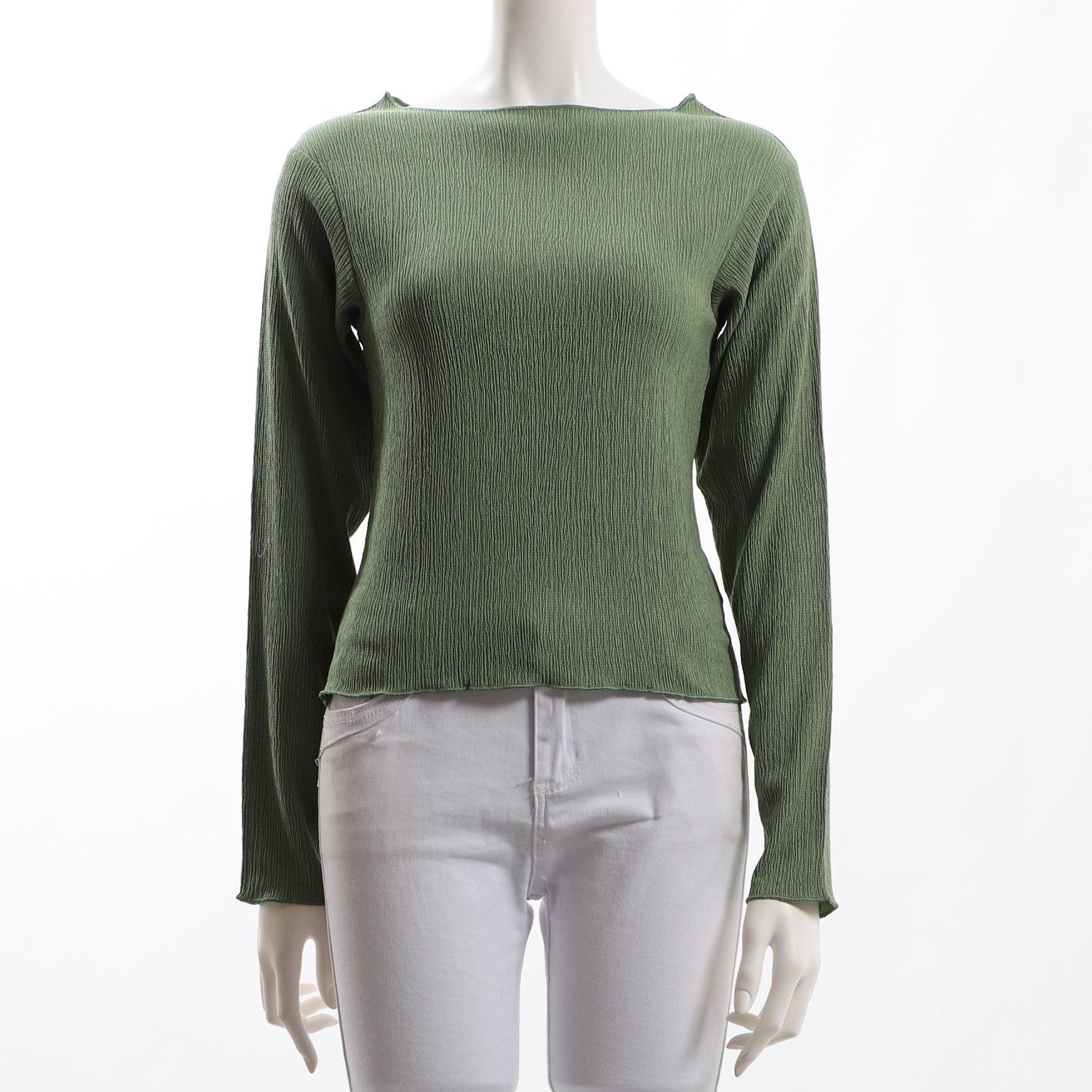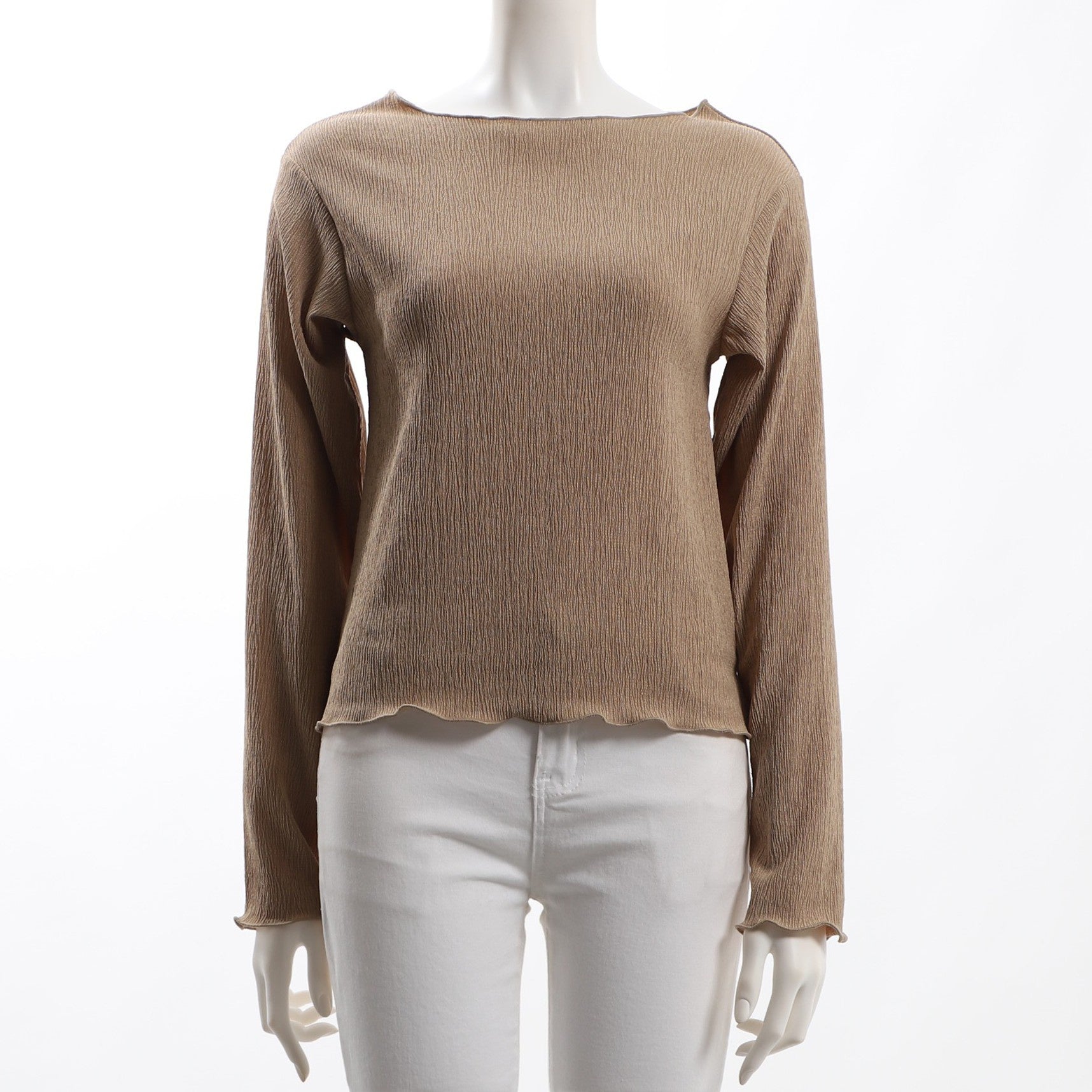 楊柳生地のボートネックカットソー。プリーツスカートを合わせてレディライクな着こなしに、デニムパンツを合わせてマニッシュに着てもいいですね。