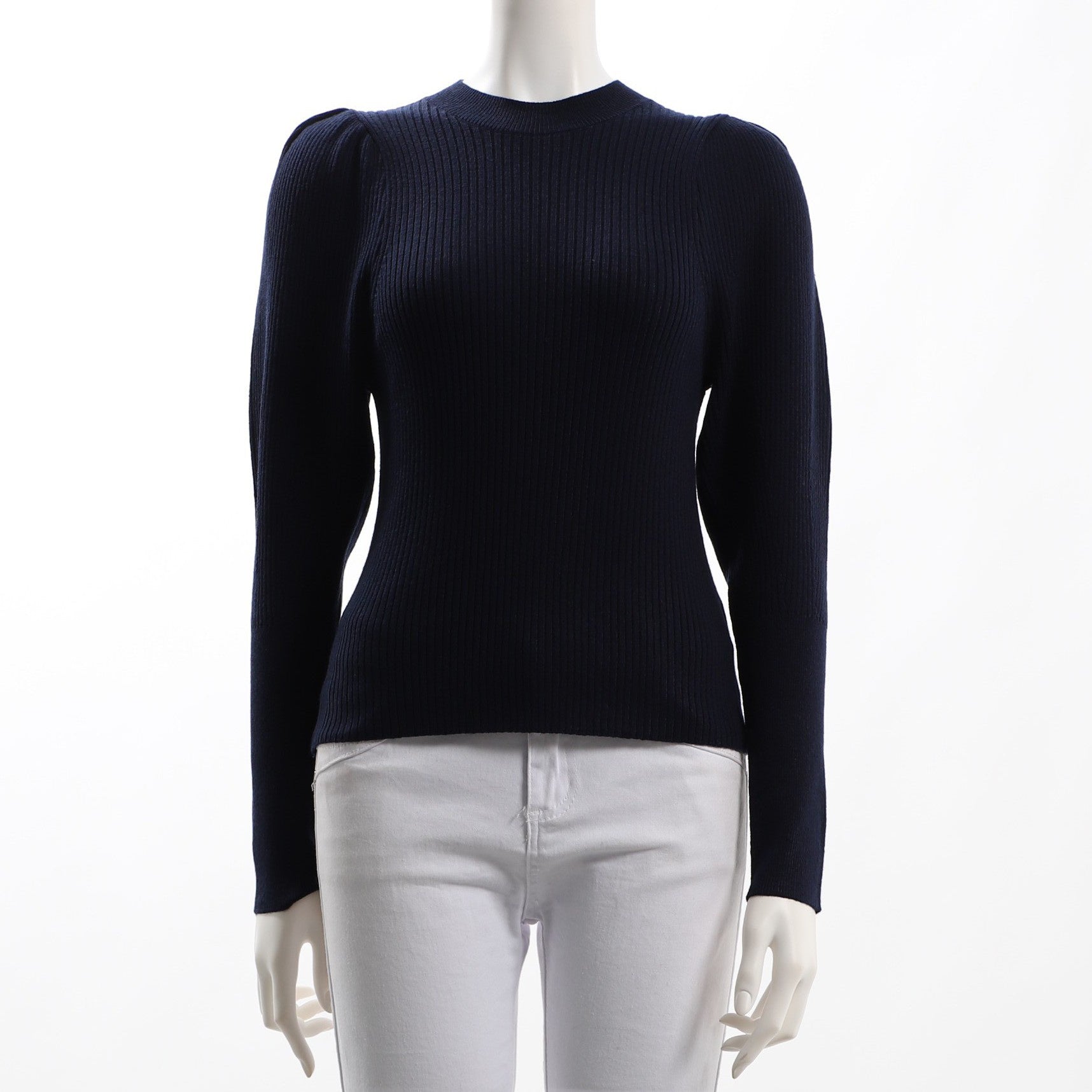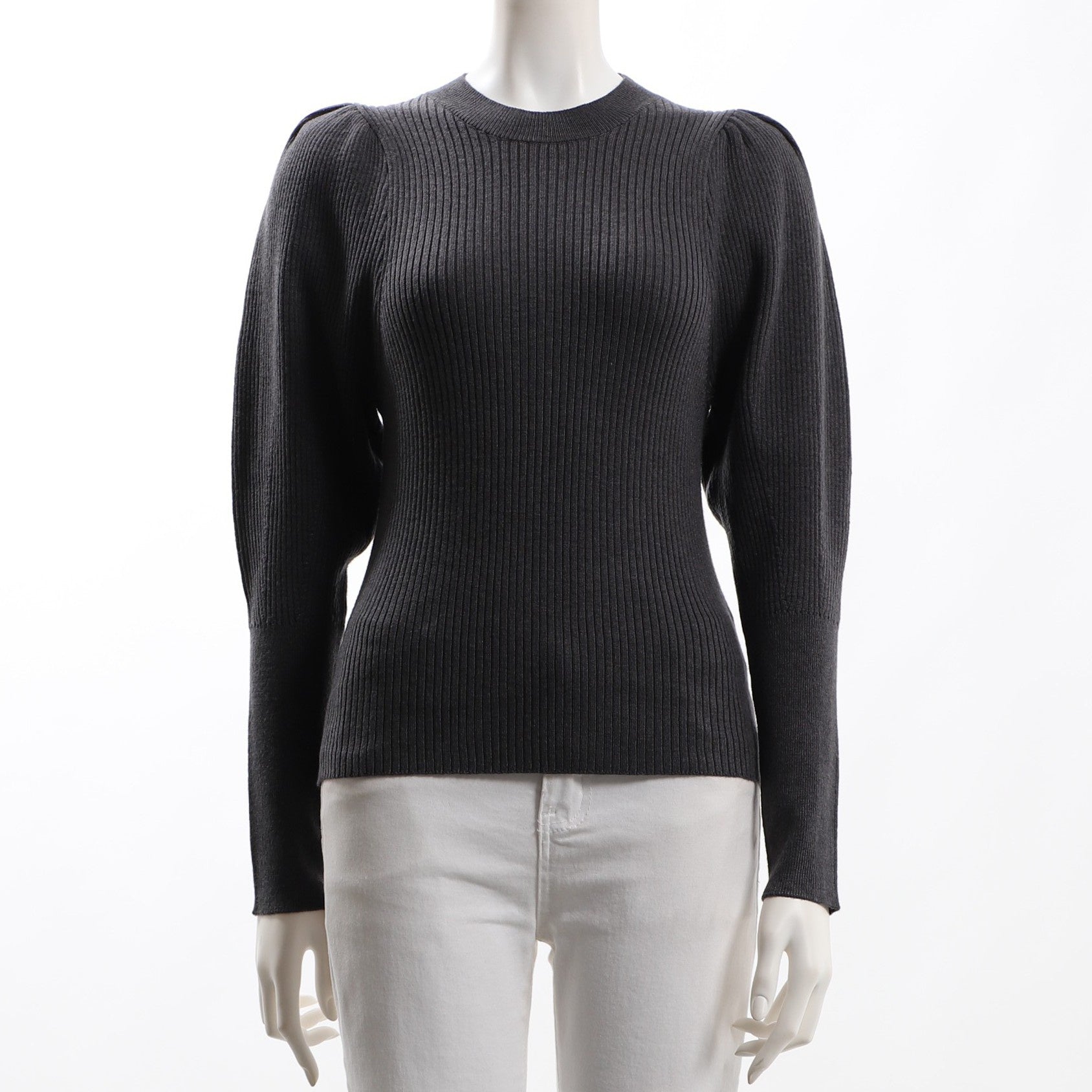 パフスリーブのリブニット。ボトムスにはフレアスカートを合わせてフェミニンに、ワイドパンツでカジュアルに仕上げても素敵です。