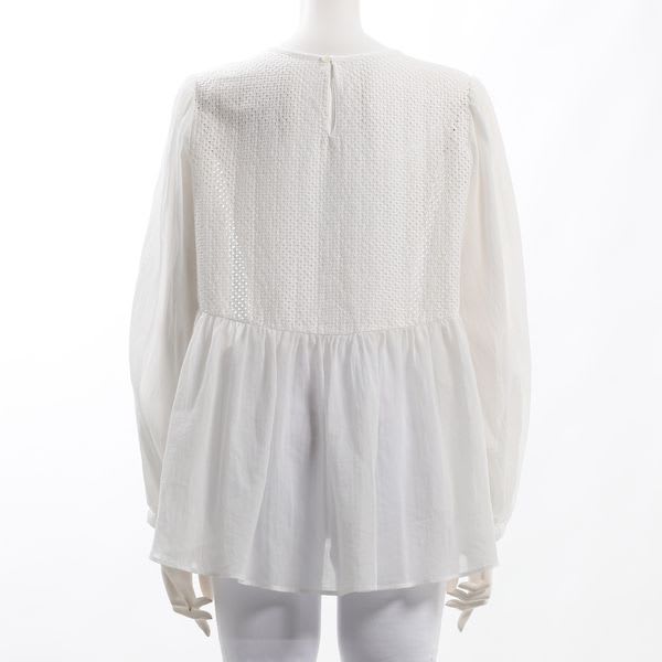バックデザインがポイントのブラウスです。インナーには、同色系のタンクトップやキャミソールを着るのがオススメですよ。タイトスカートにラウンドトゥパンプスを合わせて、女性らしい着こなしに。デニムパンツにスニーカーを合わせて、カジュアルな着こなしもステキですね。