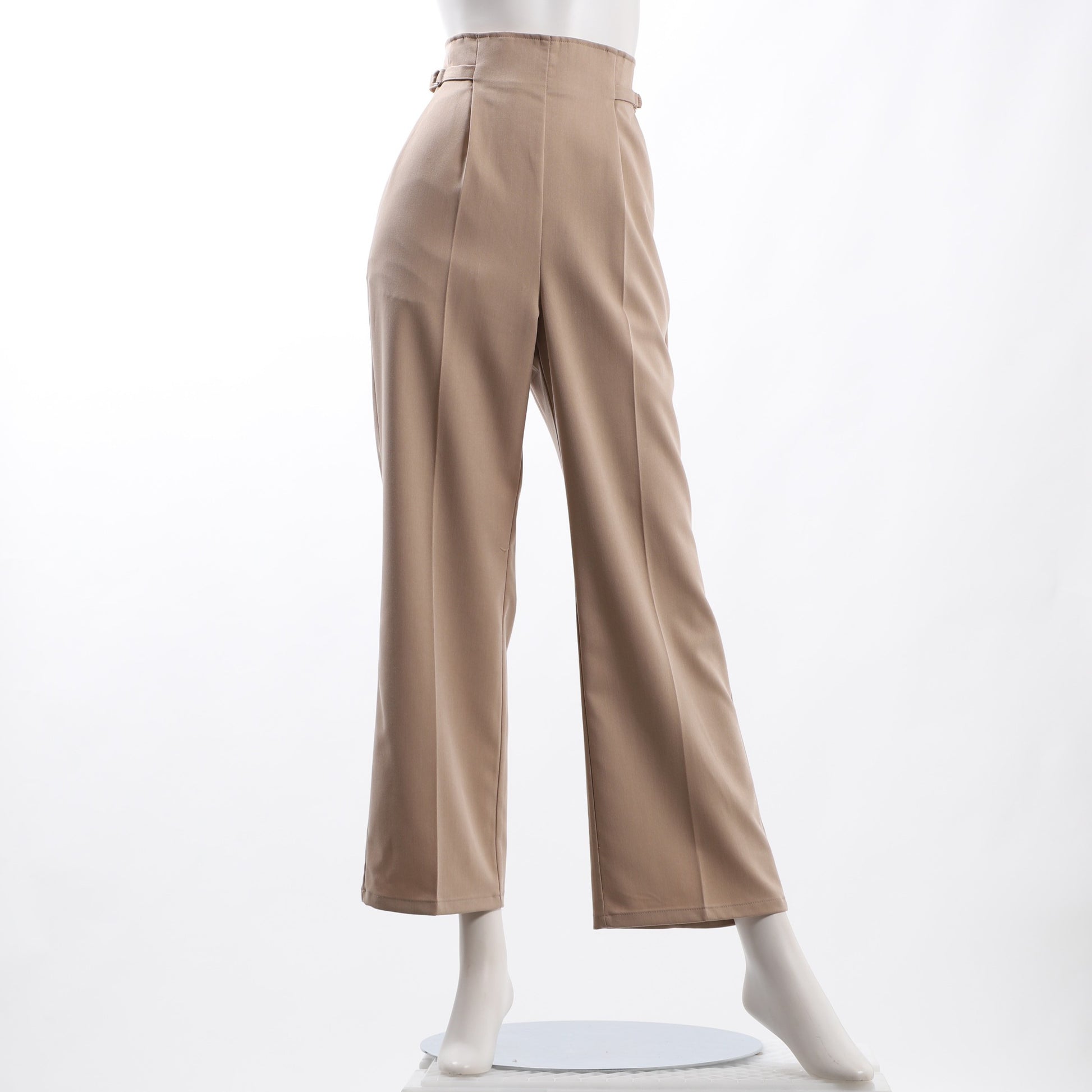 サイドのベルトがポイントのフレアパンツです。スキッパーシャツとスクエアトゥパンプスを合わせてスタイリッシュなスタイルや、リブニットとフラットシューズを合わせてカジュアルなスタイルも素敵ですよ。