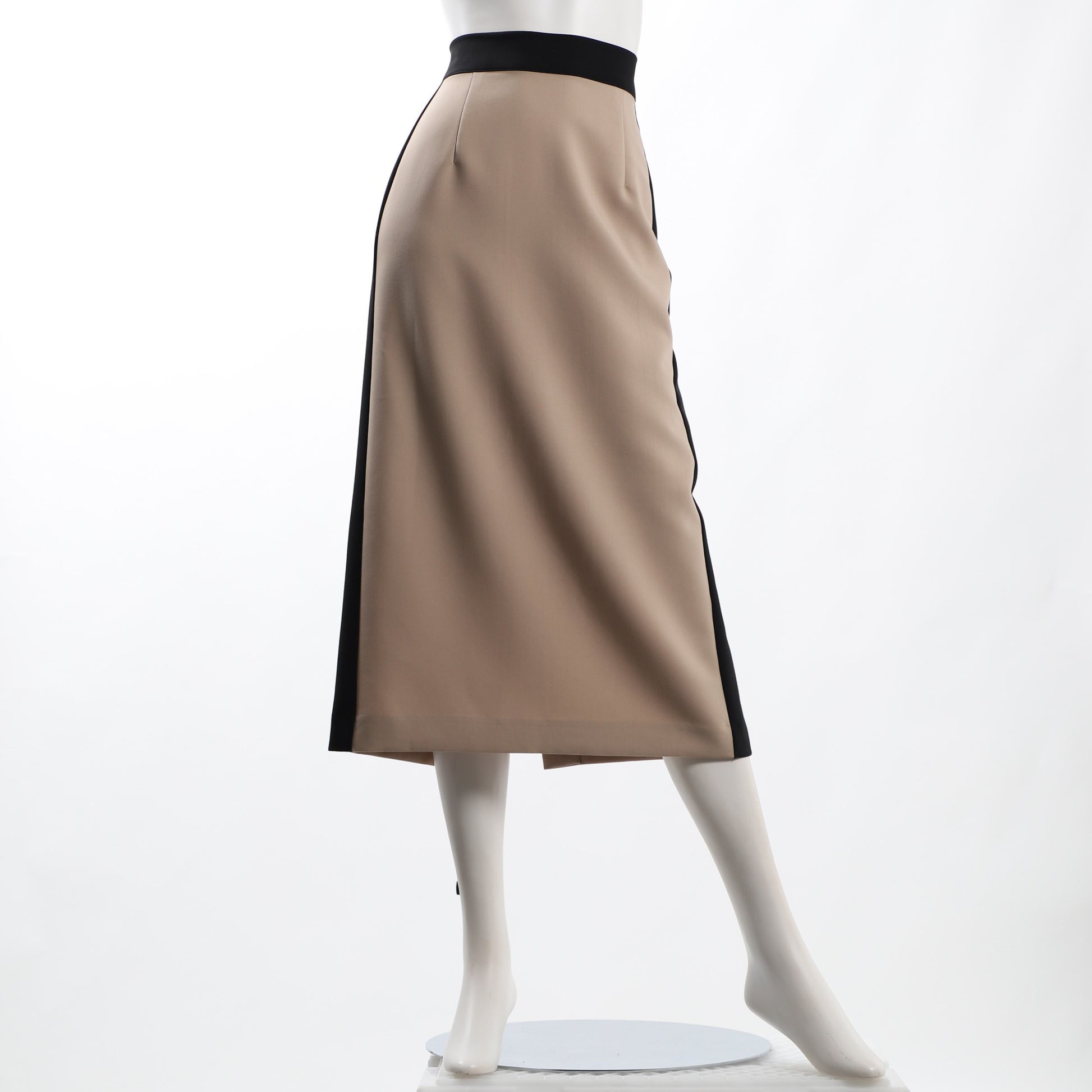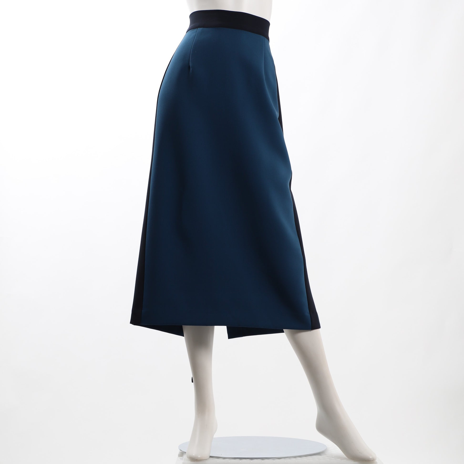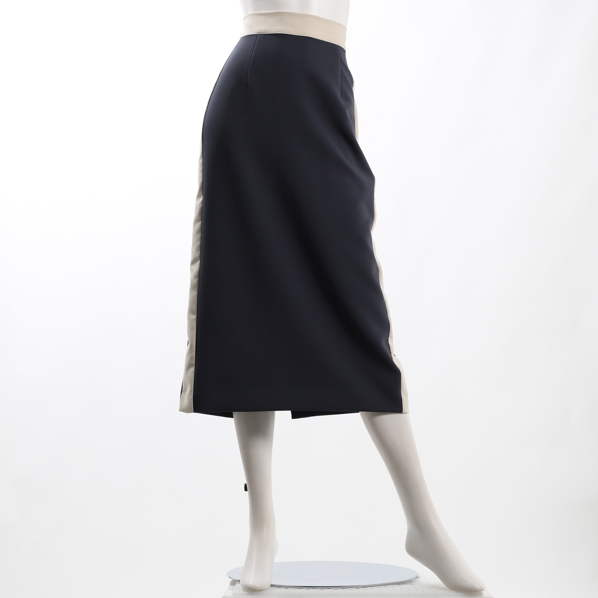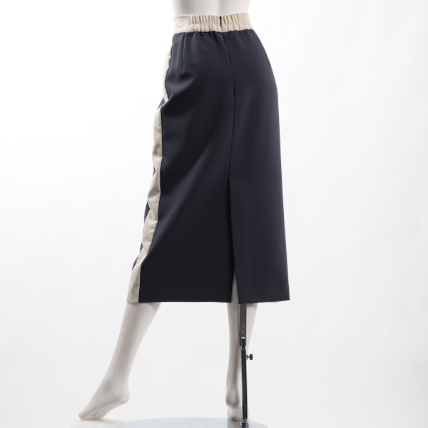 バイカラーの切り替えがポイントのバックスリット入りタイトスカート。ボウタイブラウスを合わせてきれいめカジュアルな着こなしに、ゆったりとしたオーバーサイズのカットソーを合わせてラフに着こなすのもいいですね。
