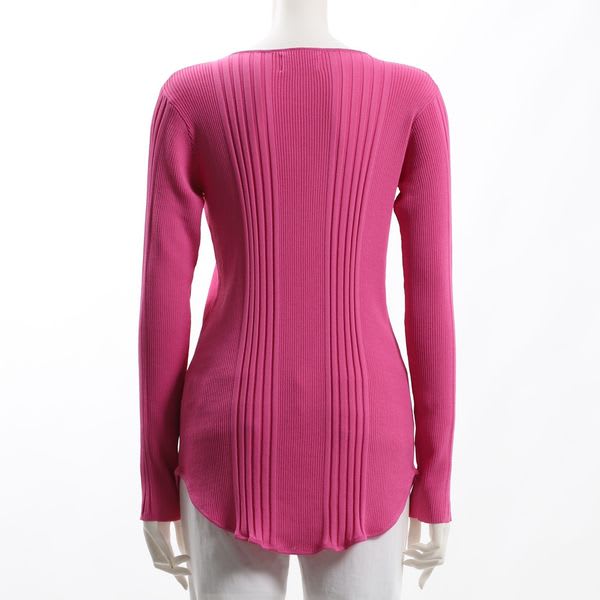 ランダムリブニットです。デニムパンツとスニーカーを合わせてカジュアルに、フレアスカートとバレエシューズを合わせてフェミニンに着こなしても素敵ですよ。