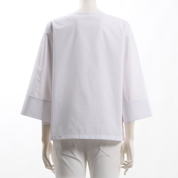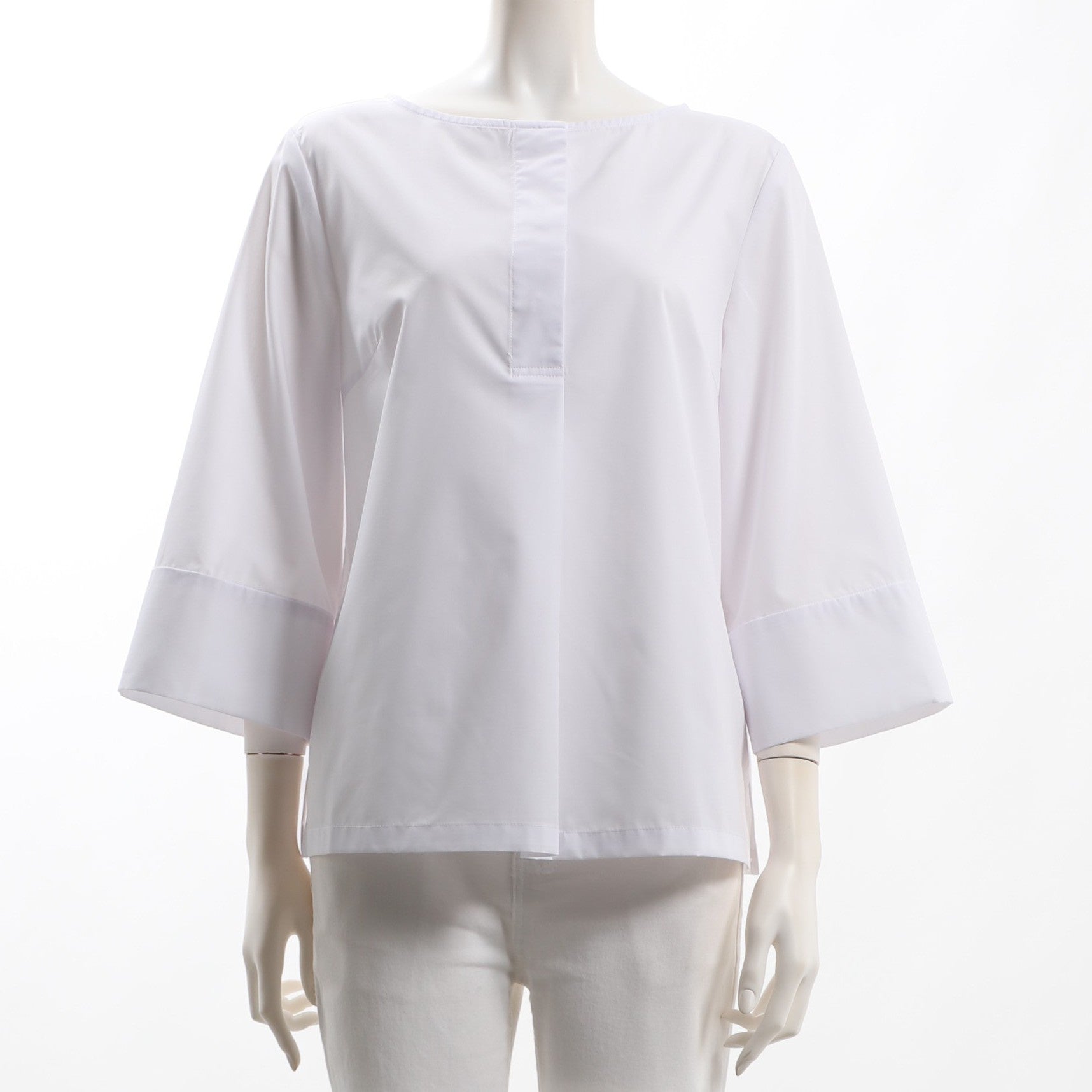 広がりを持たせたお袖がポイントのボートネックブラウス。ボトムスにはデニムパンツを合わせてカジュアルに、ギンガムチェックのフレアスカートで女性らしくまとめてもいいですね。